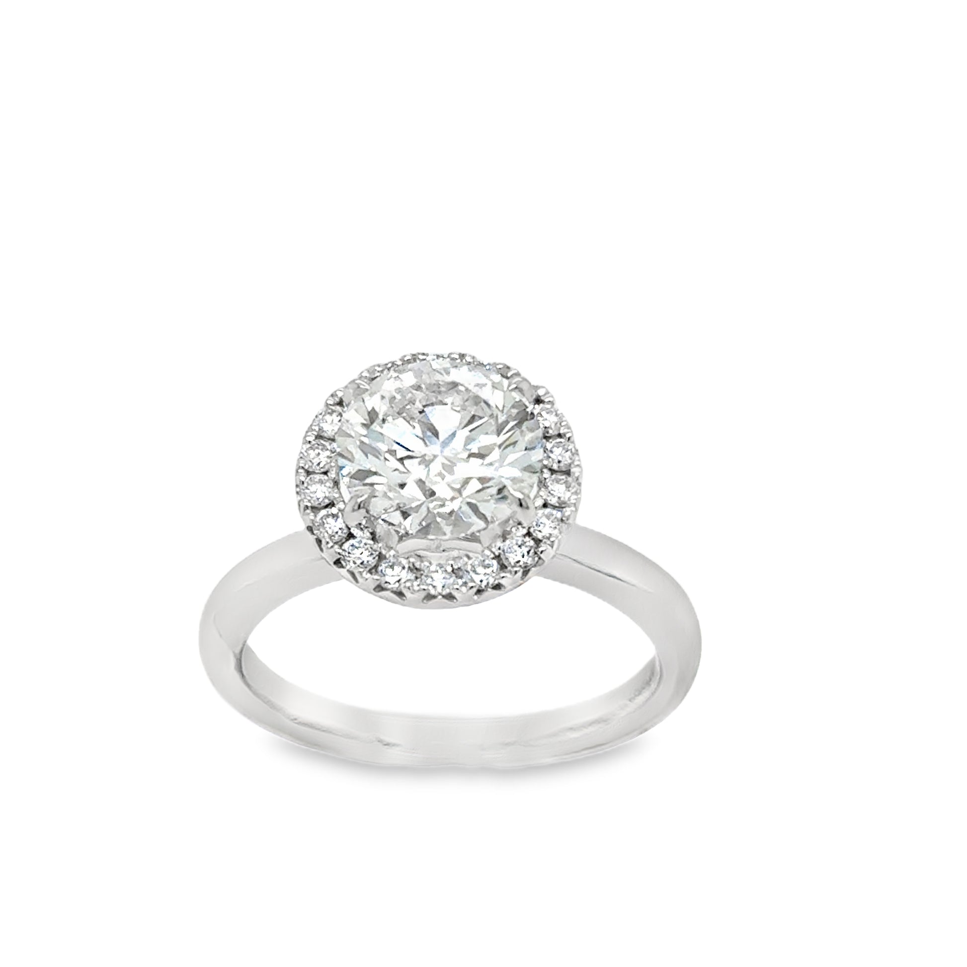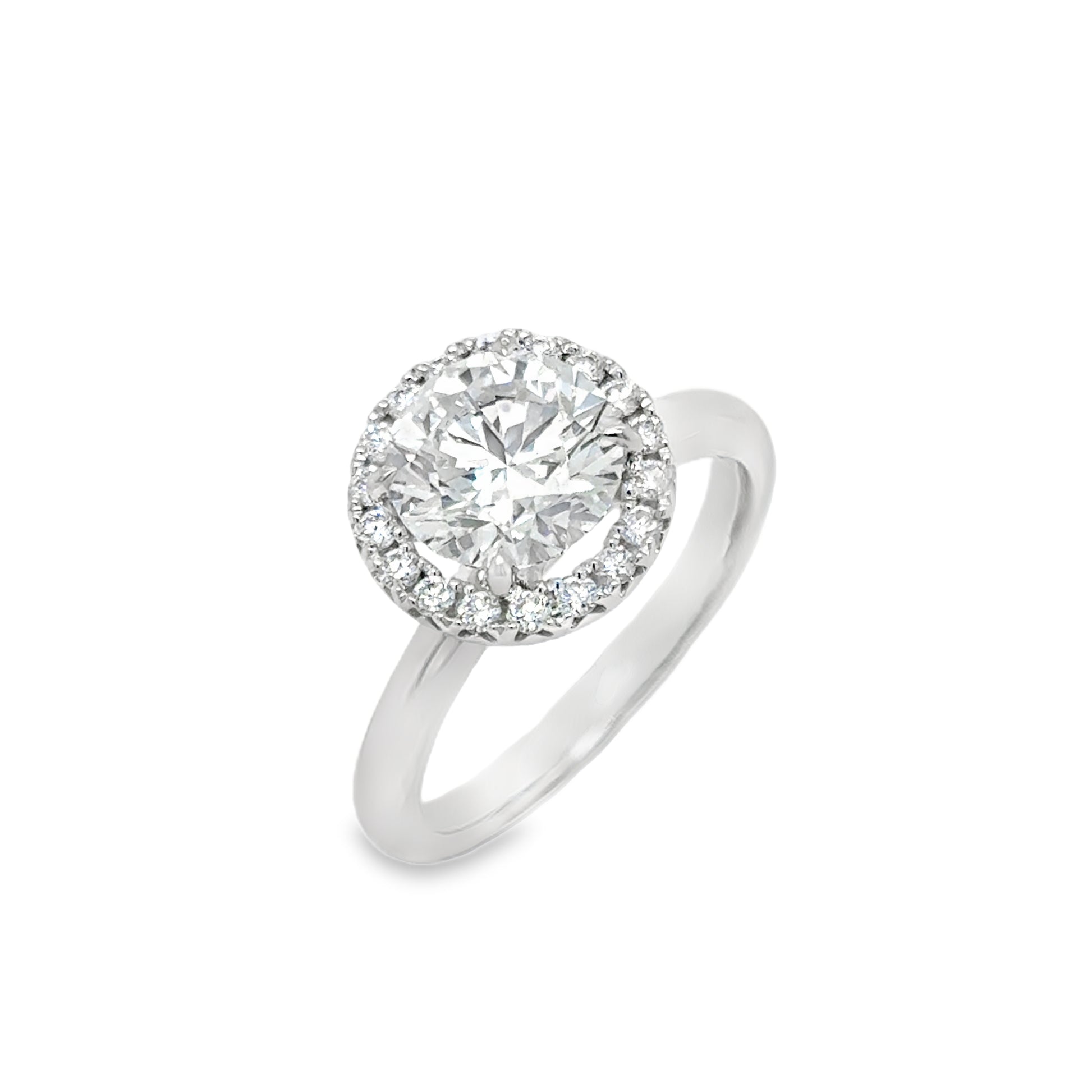Platinum Round Brilliant Halo Cultured Diamond Ring 1.98ct