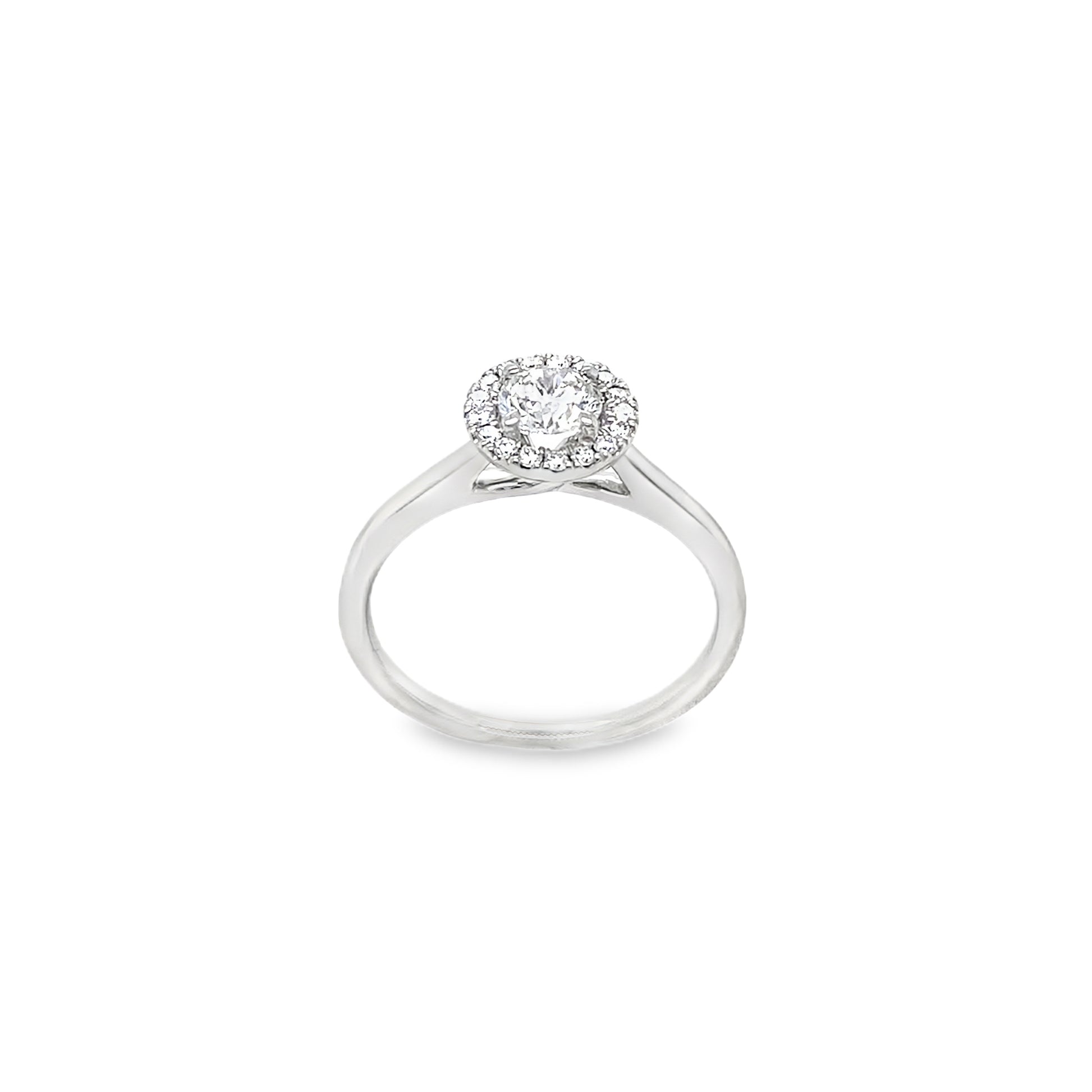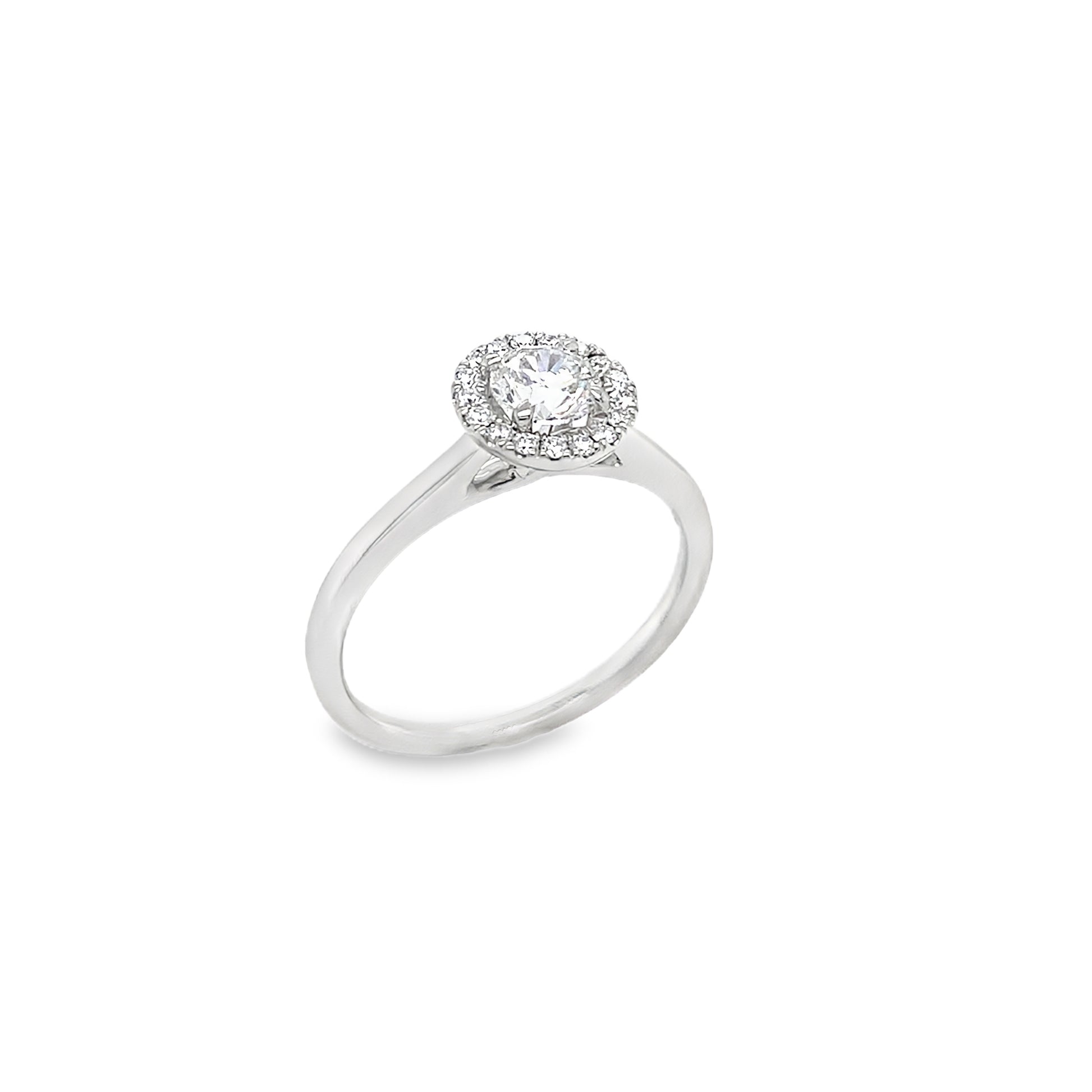 Platinum Round Brilliant Soliatiare Diamond Ring with Diamond Set Halo .70ct