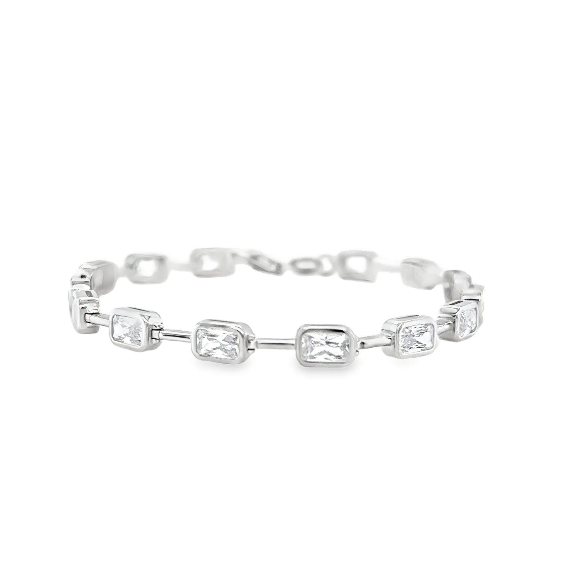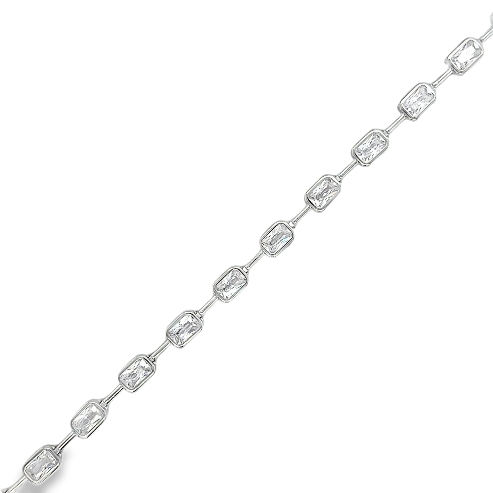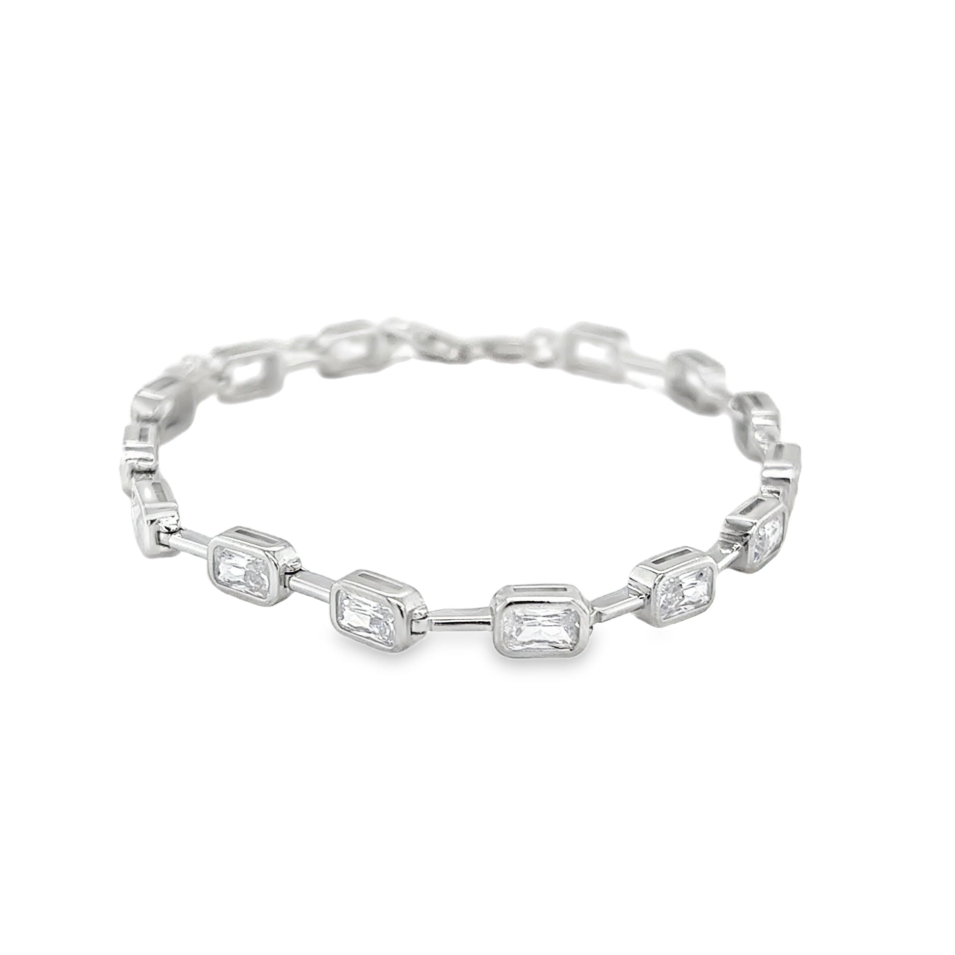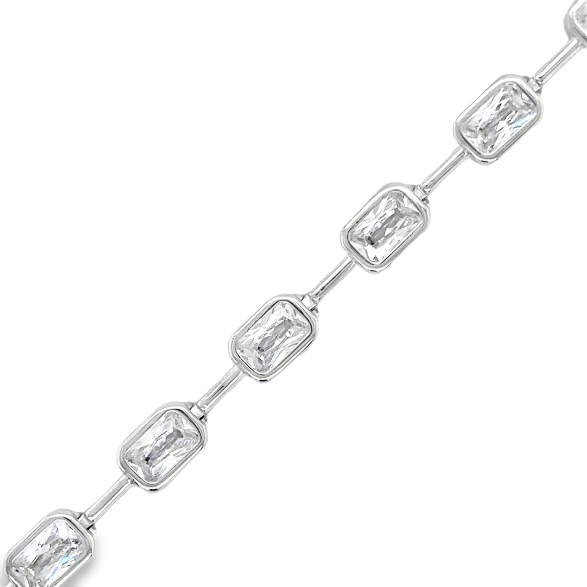 Sterling Silver CZ Rubover & Bar Link Bracelet