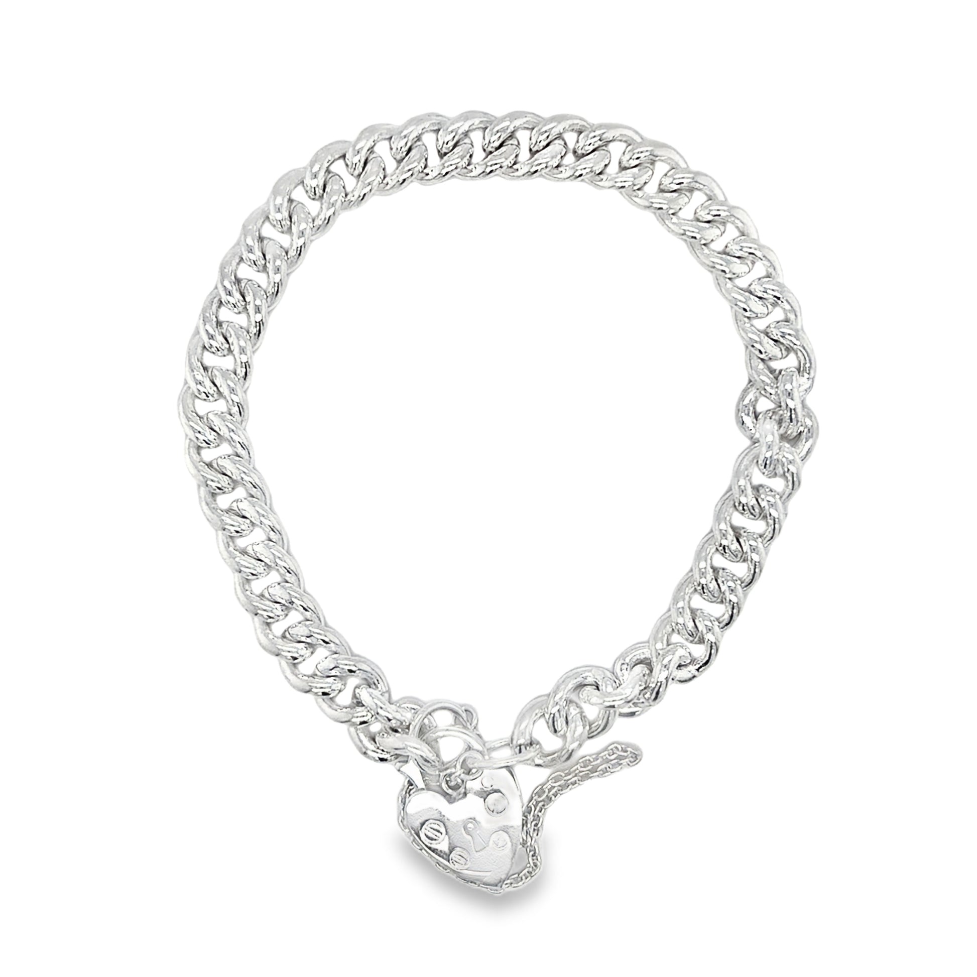 Sterling Silver Curb Bracelet with Heart Padlock
