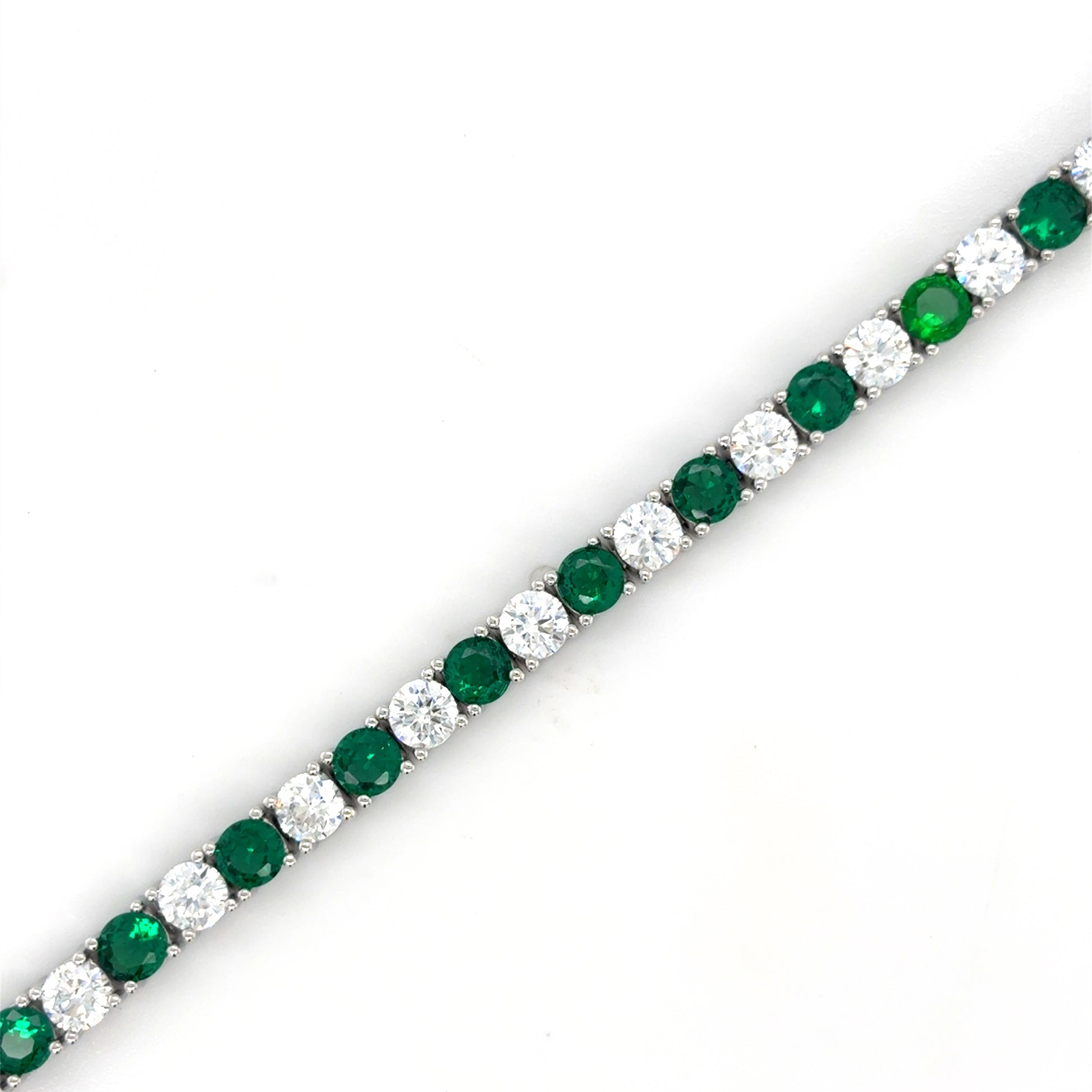 Sterling Silver 4mm CZ White & Green Tennis Bracelet