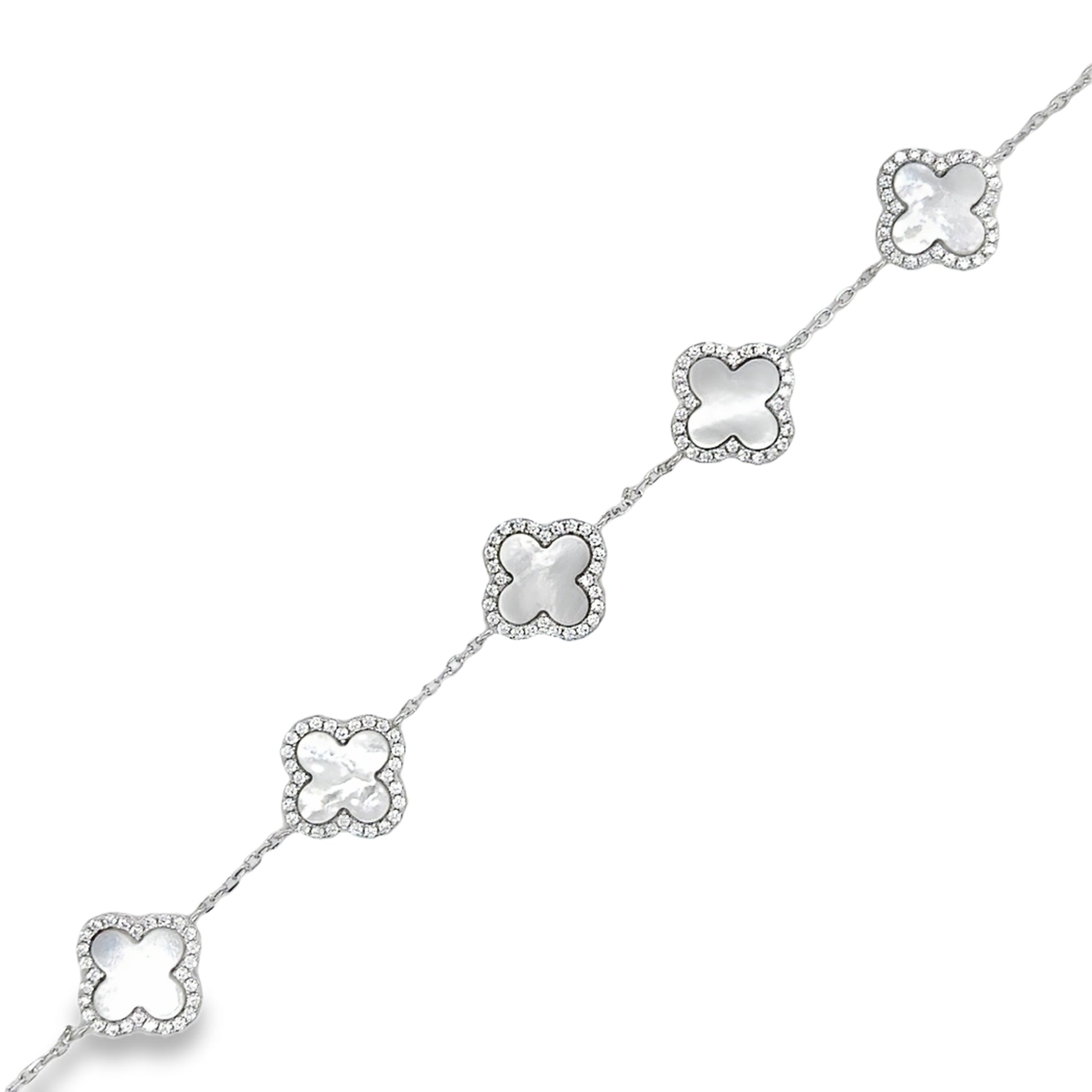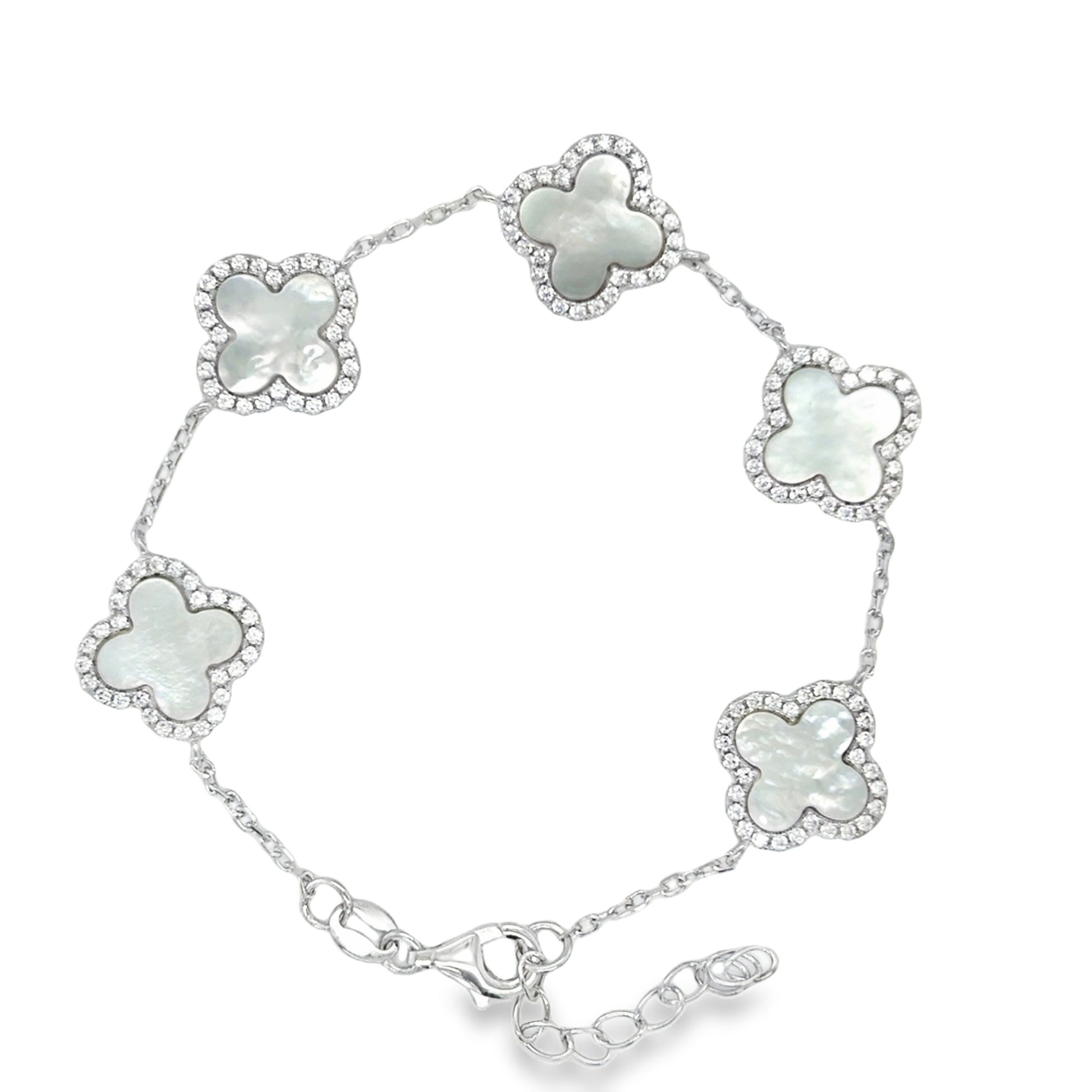 Sterling Silver CZ & Mother Of Pearl Clover Bracelet