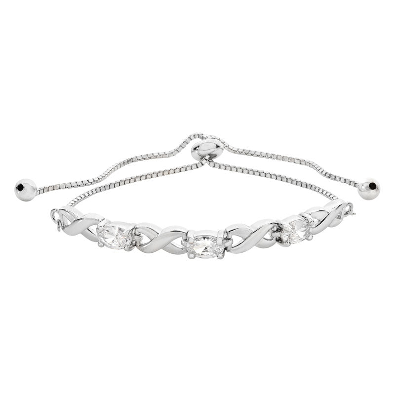 Sterling Silver Oval Cubic Zirocnia and Polished Infinity Adjustable Bracelet