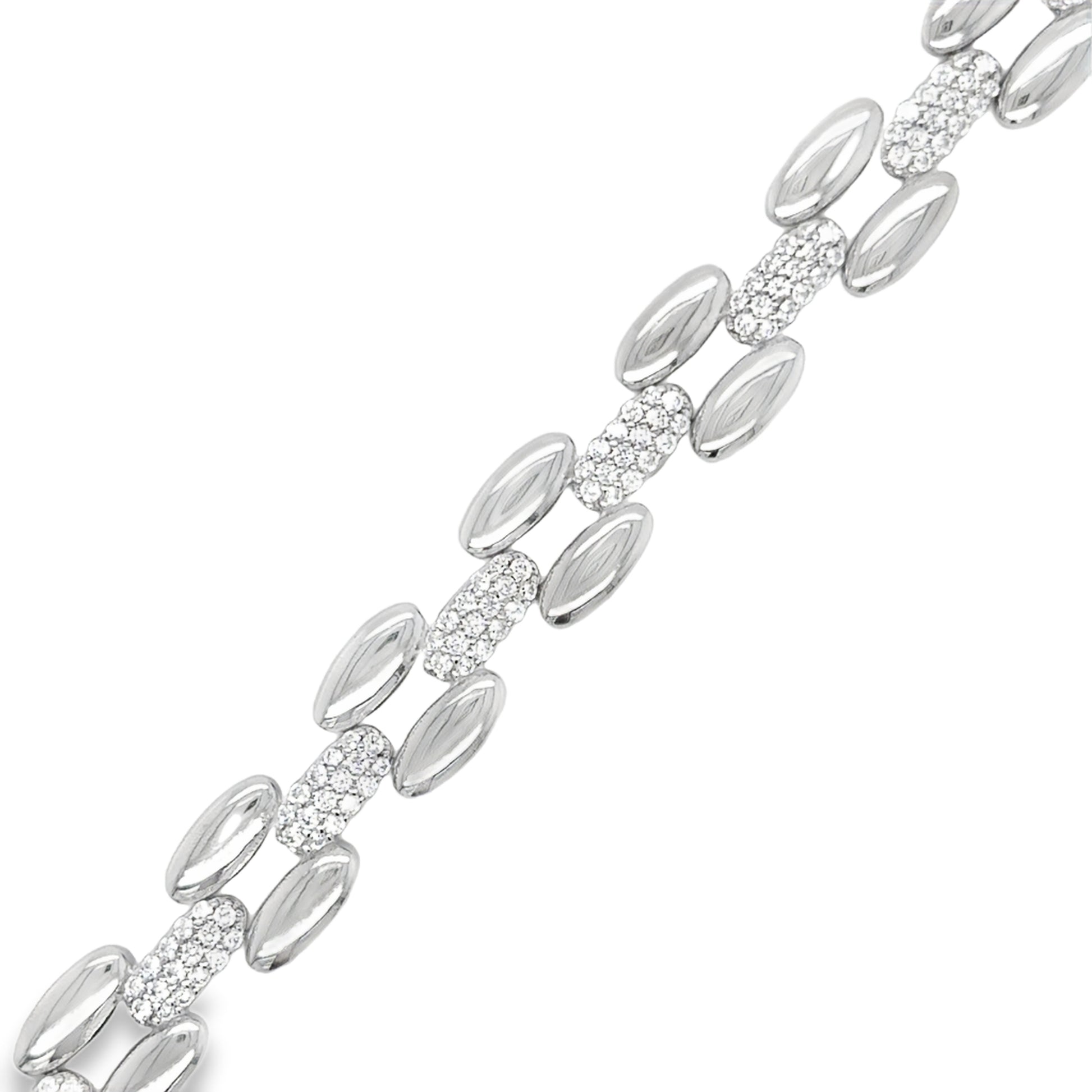 Sterling Silver Cubic Zirconia Brick Link Bracelet