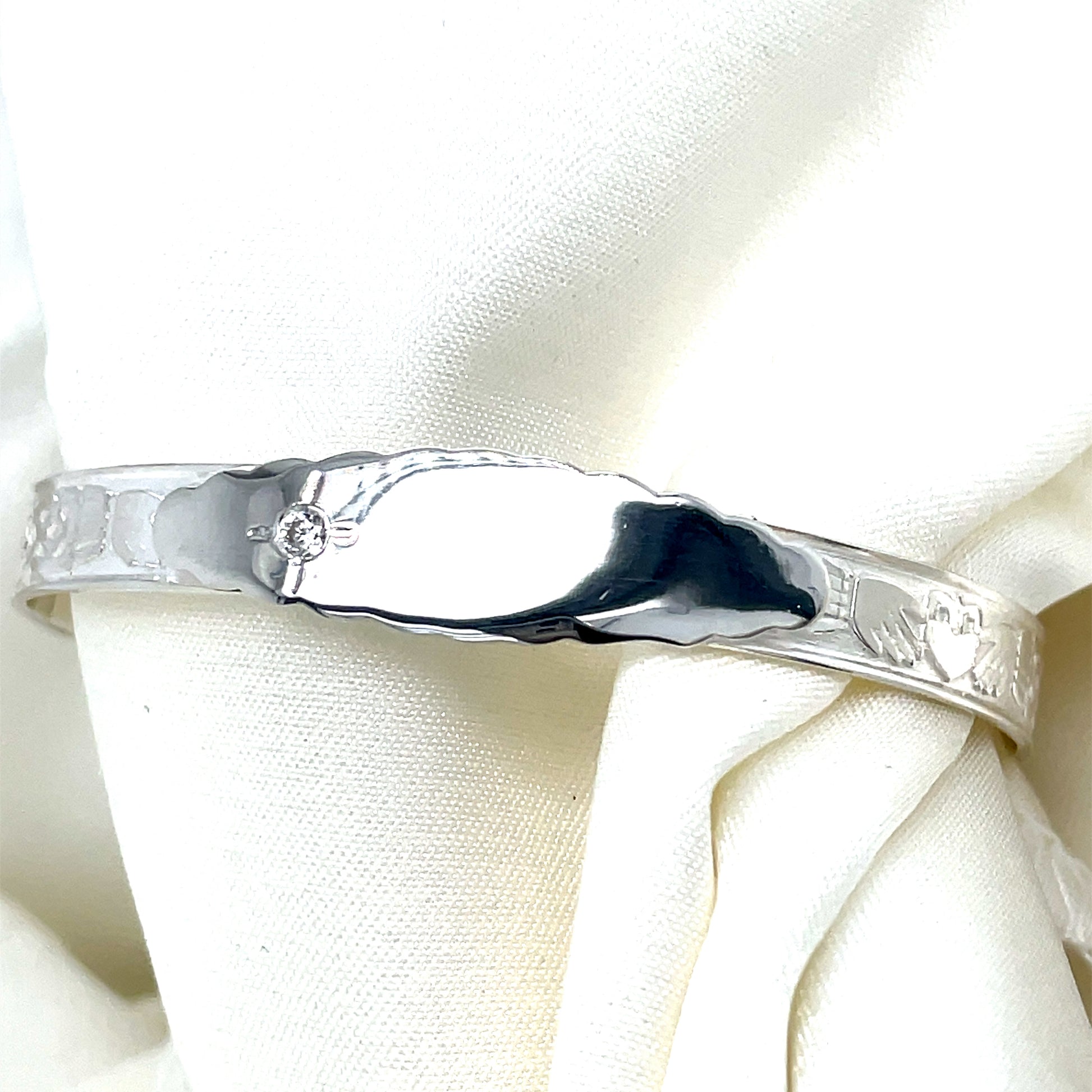 Sterling Silver Claddagh Baby Bangle With Cubic Zirconia