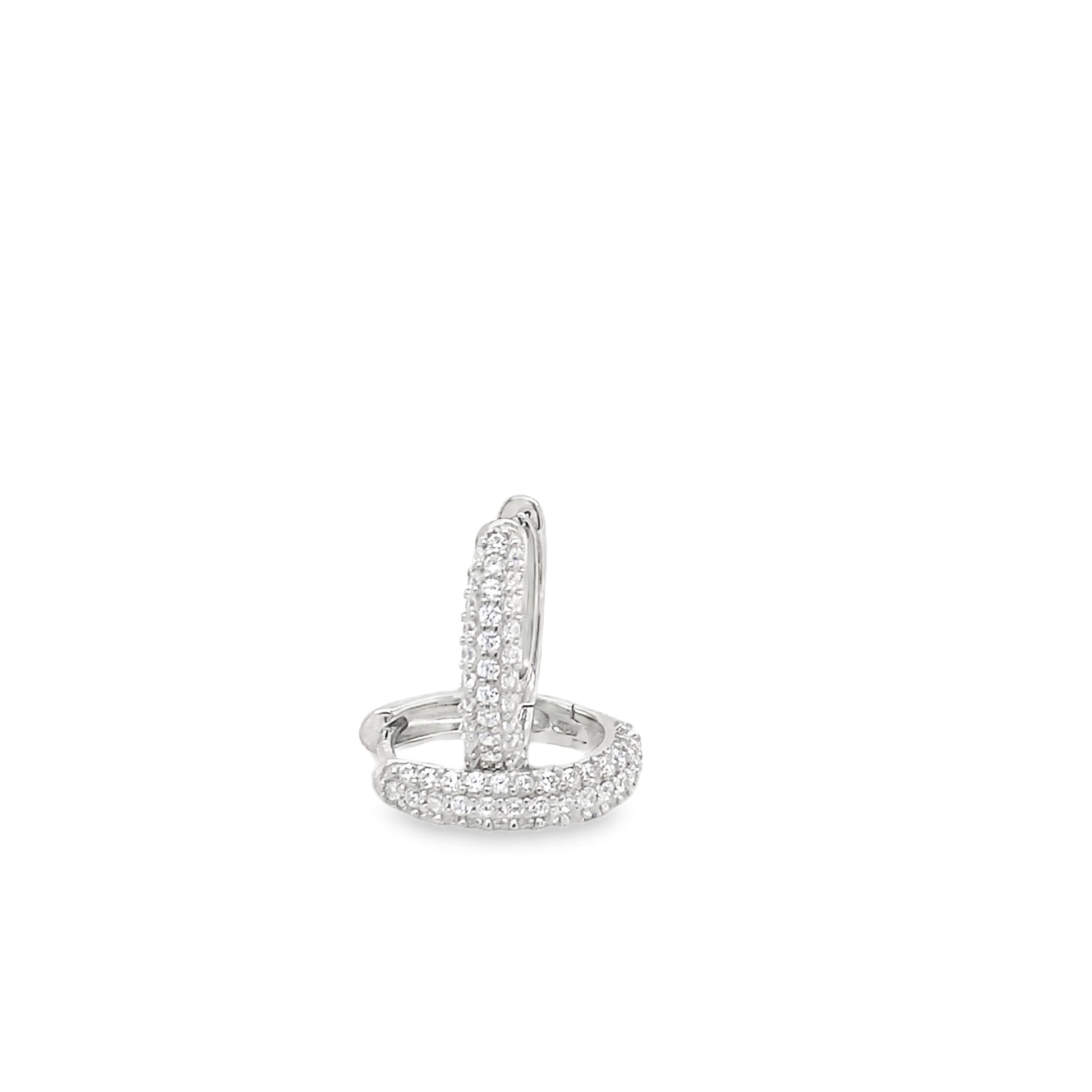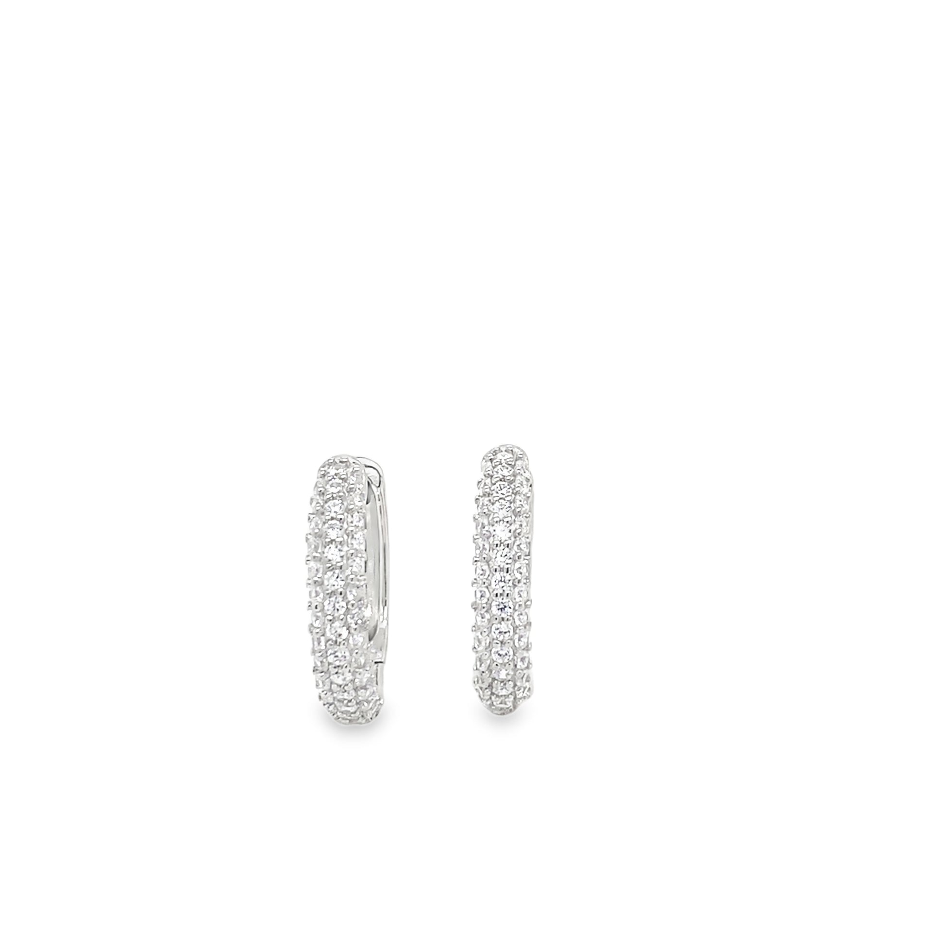 Sterling Silver CZ Pave 15mm Hoop Earrings