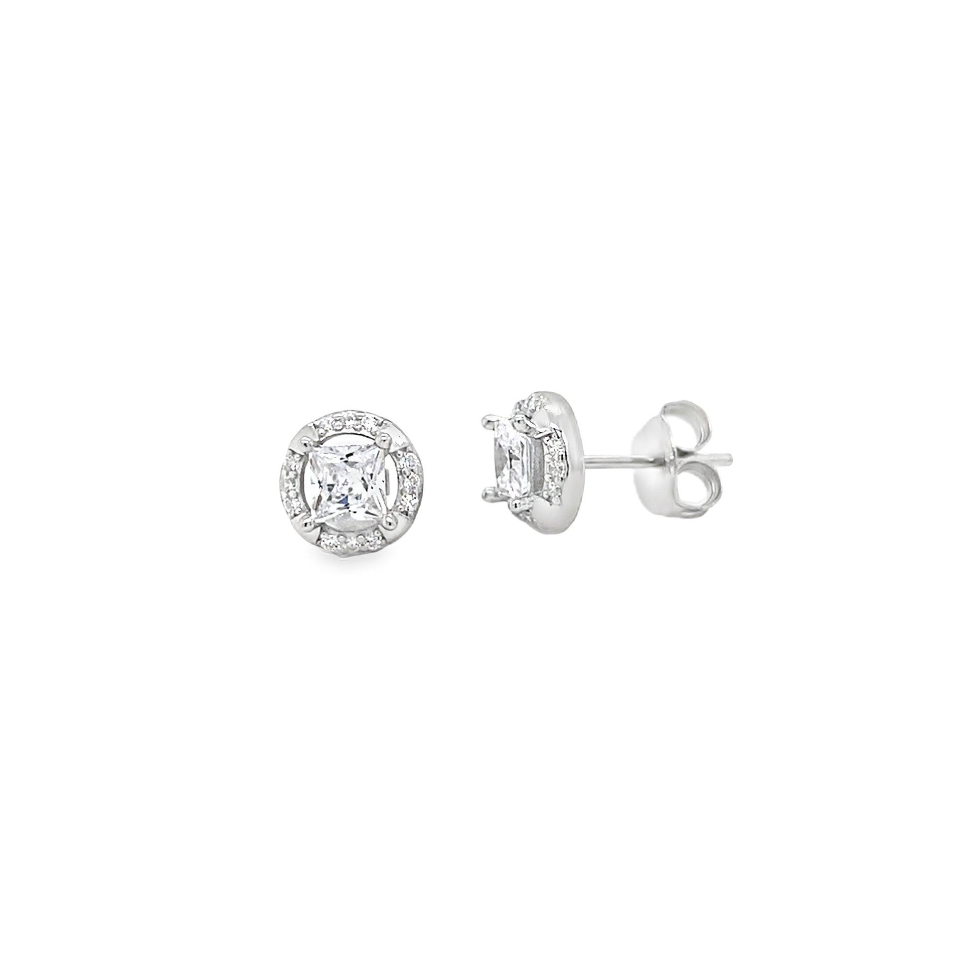 Sterling Silver CZ Square Centre Stone With Round Halo