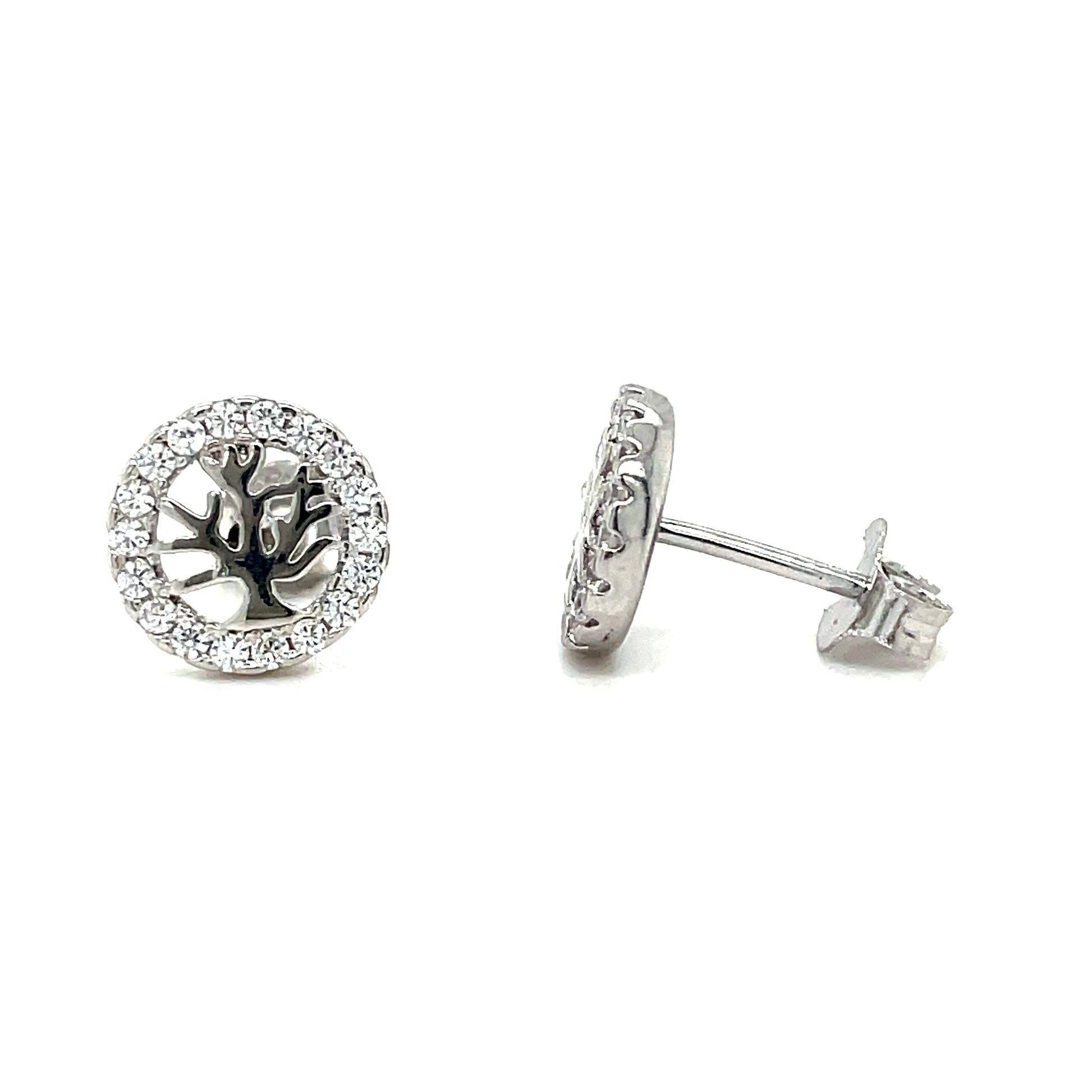 Sterling Silver Open CZ Tree of Life Stud Earring