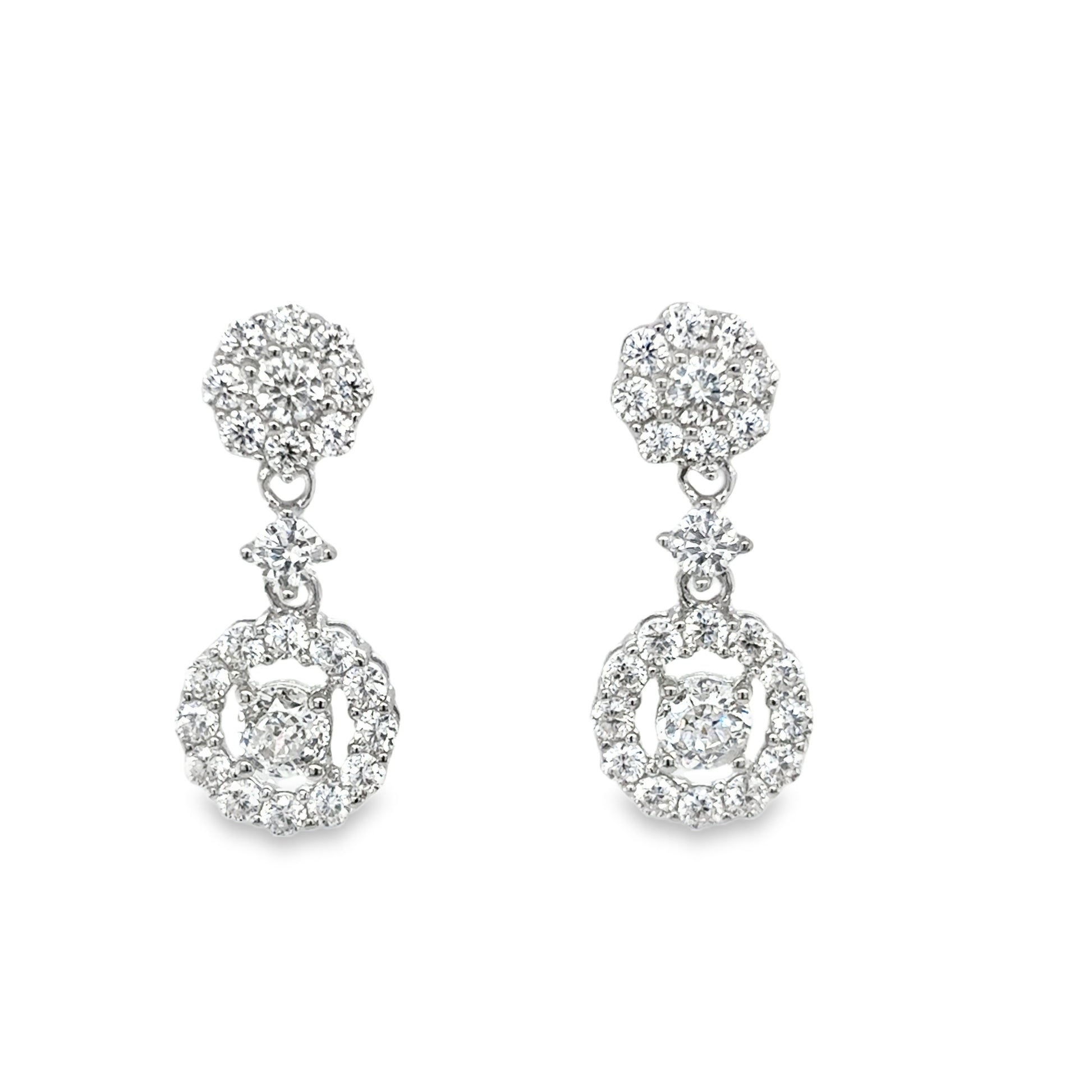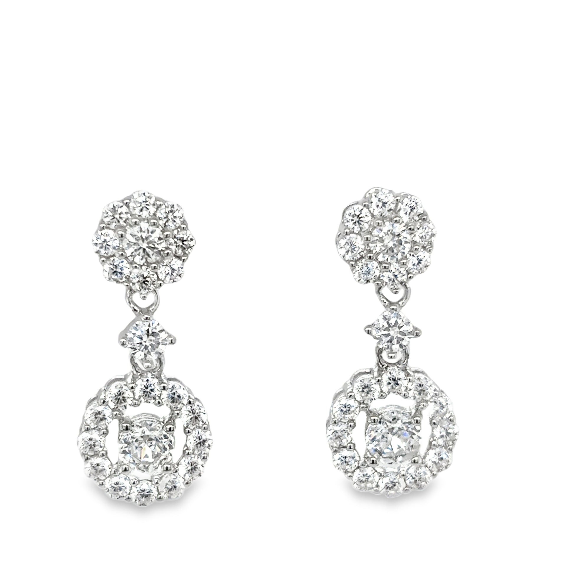 Sterling Silver Round CZ Cluster Drop Earrings