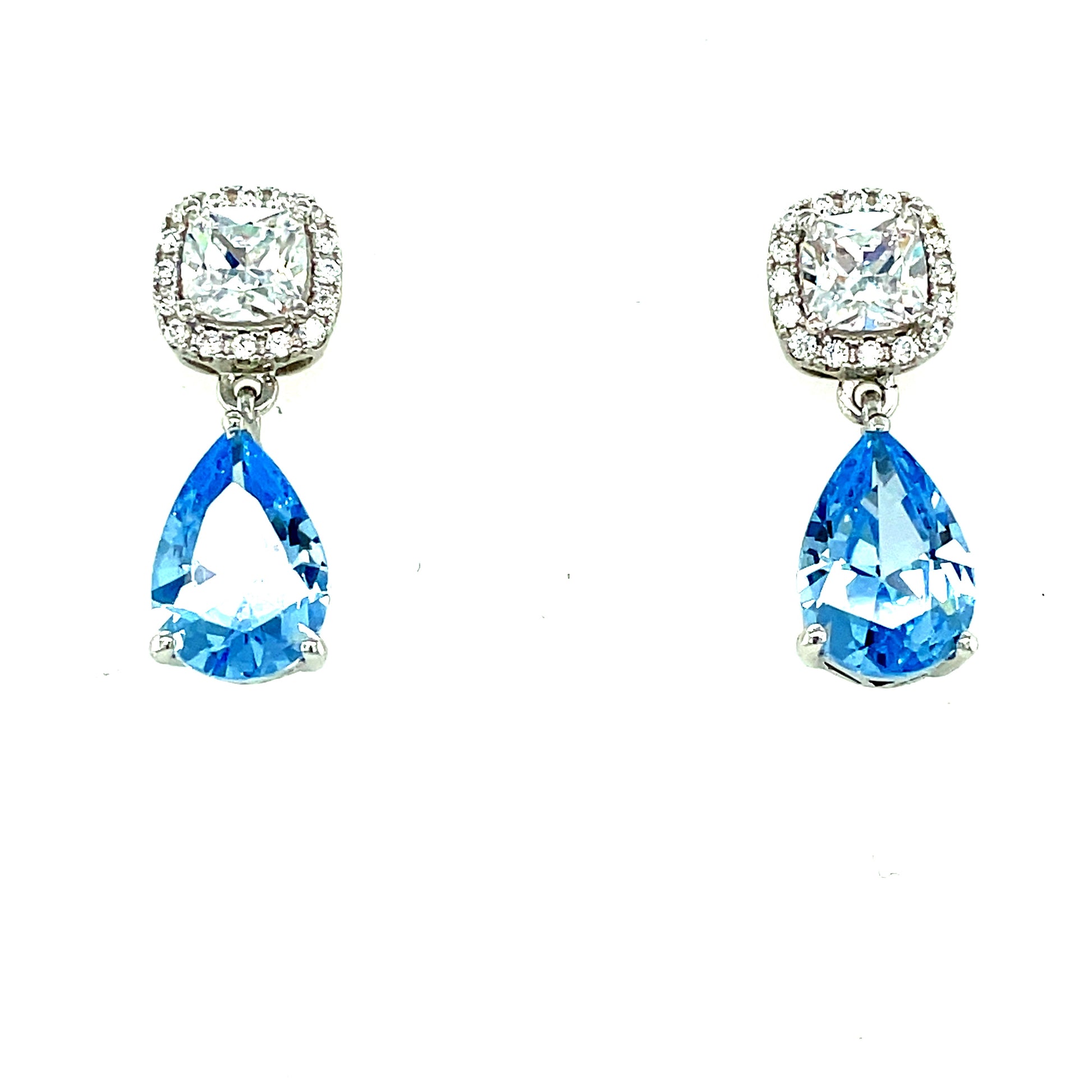 Sterling Silver Cubic Zirconia/Aqua Square/Pear Drop Earring
