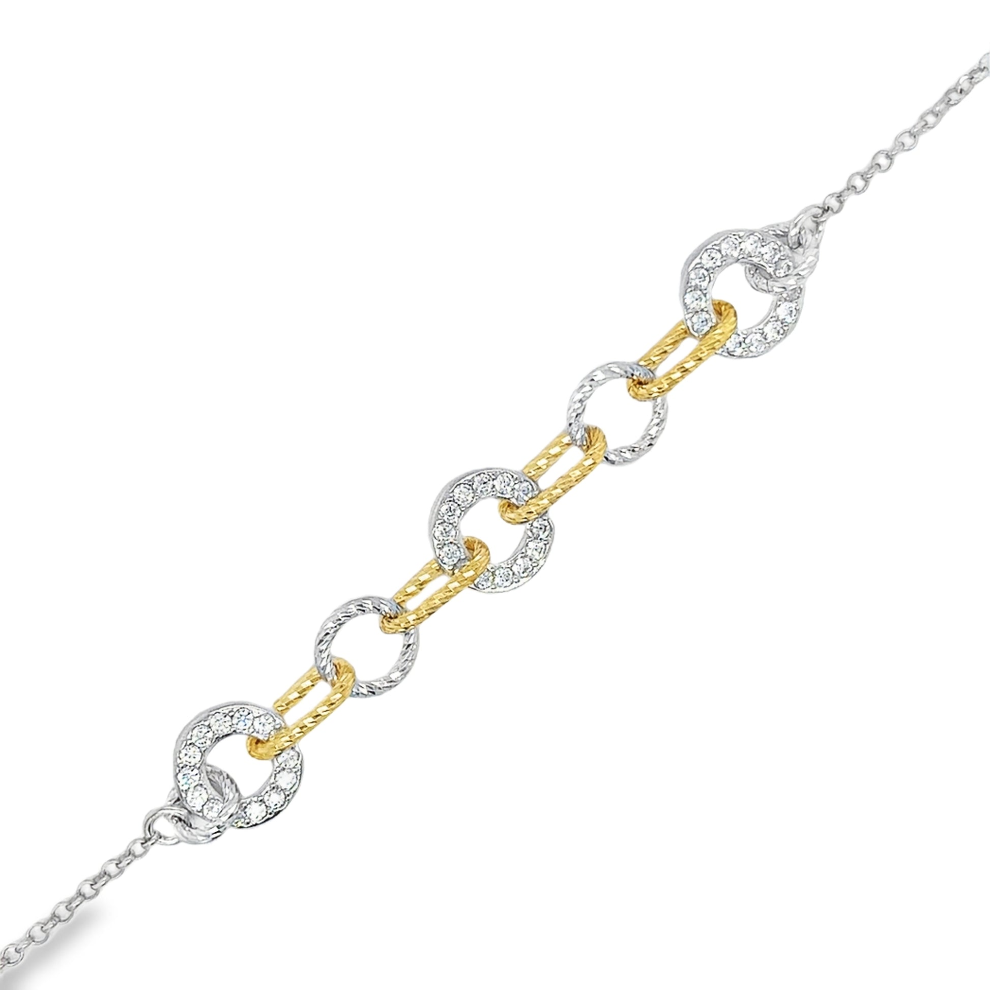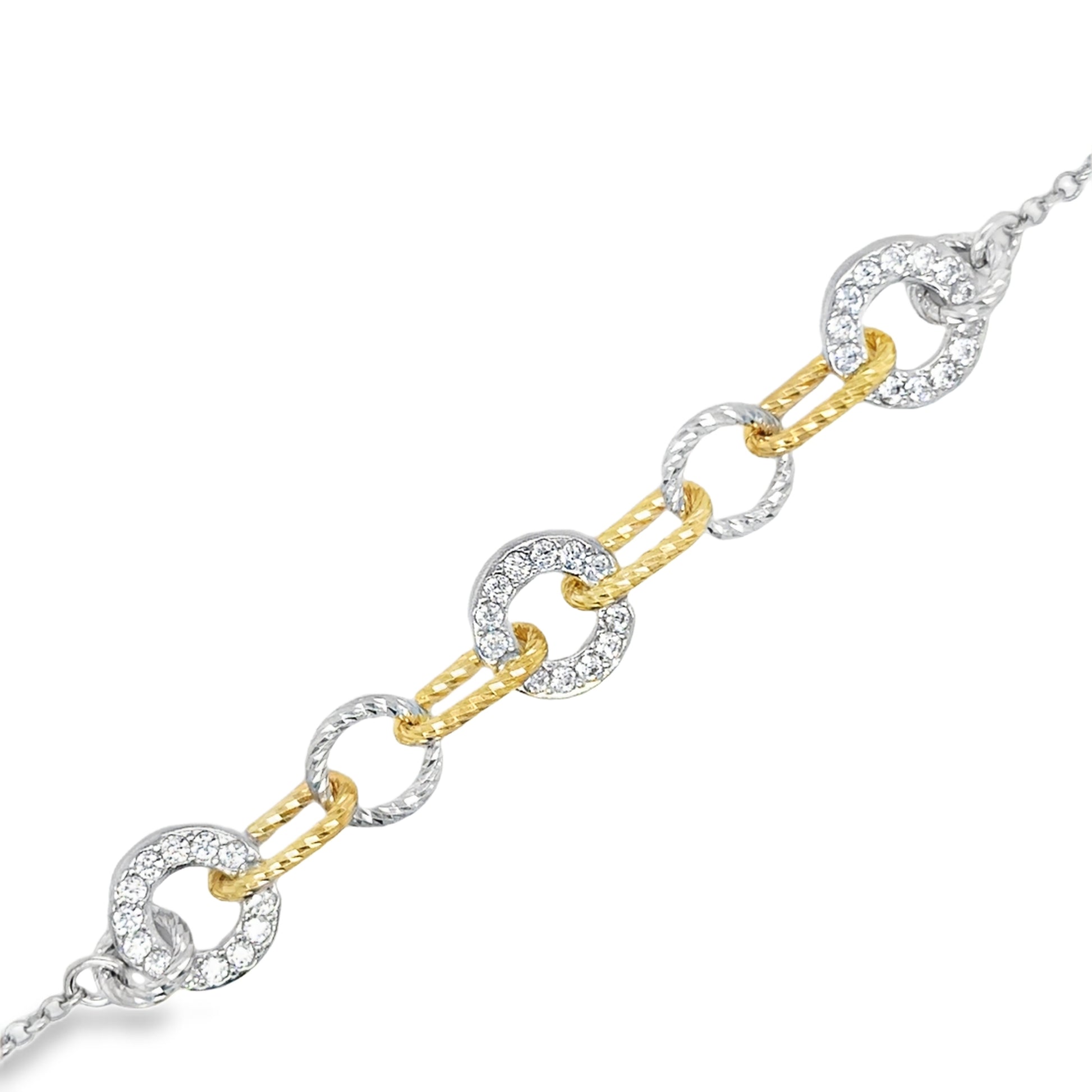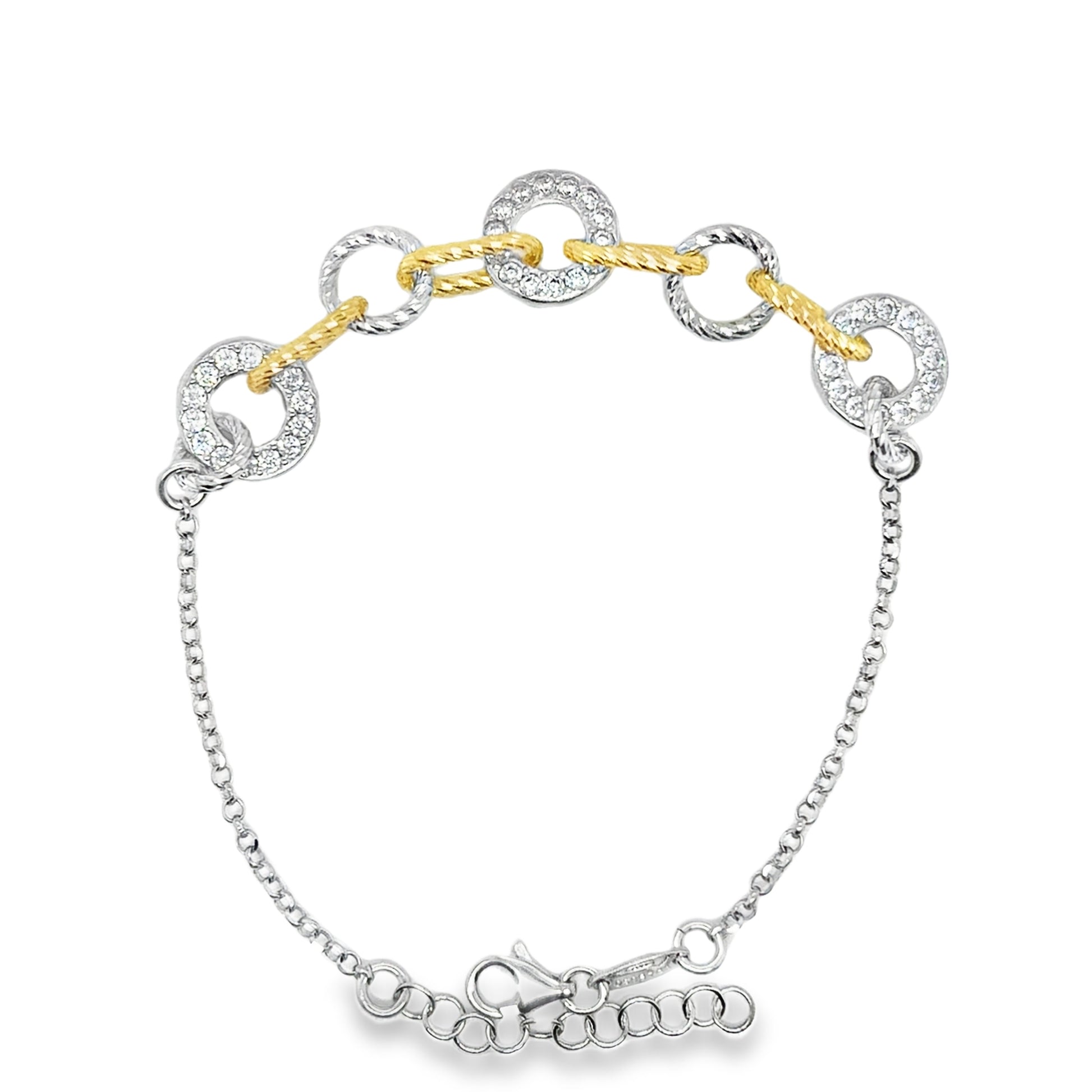 Sterling Silver and Gold Plated Diamond Cut Paperlink and CZ Circle Bracelet