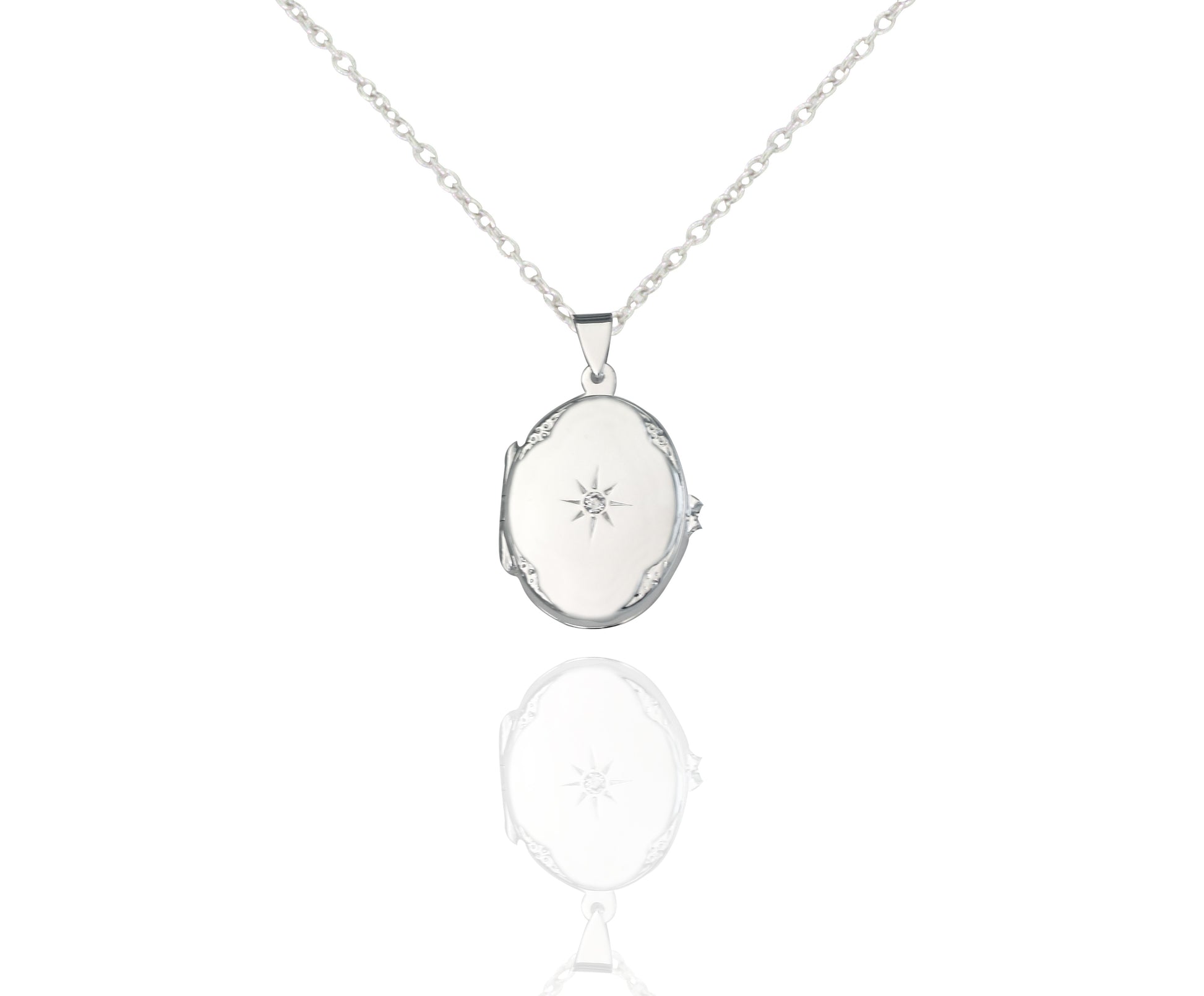 Sterling Silver Cubic Zirconia Star Centre Oval Locket