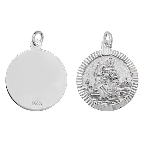 Sterling Silver St. Christopher Diamond Cut Medal And Chain