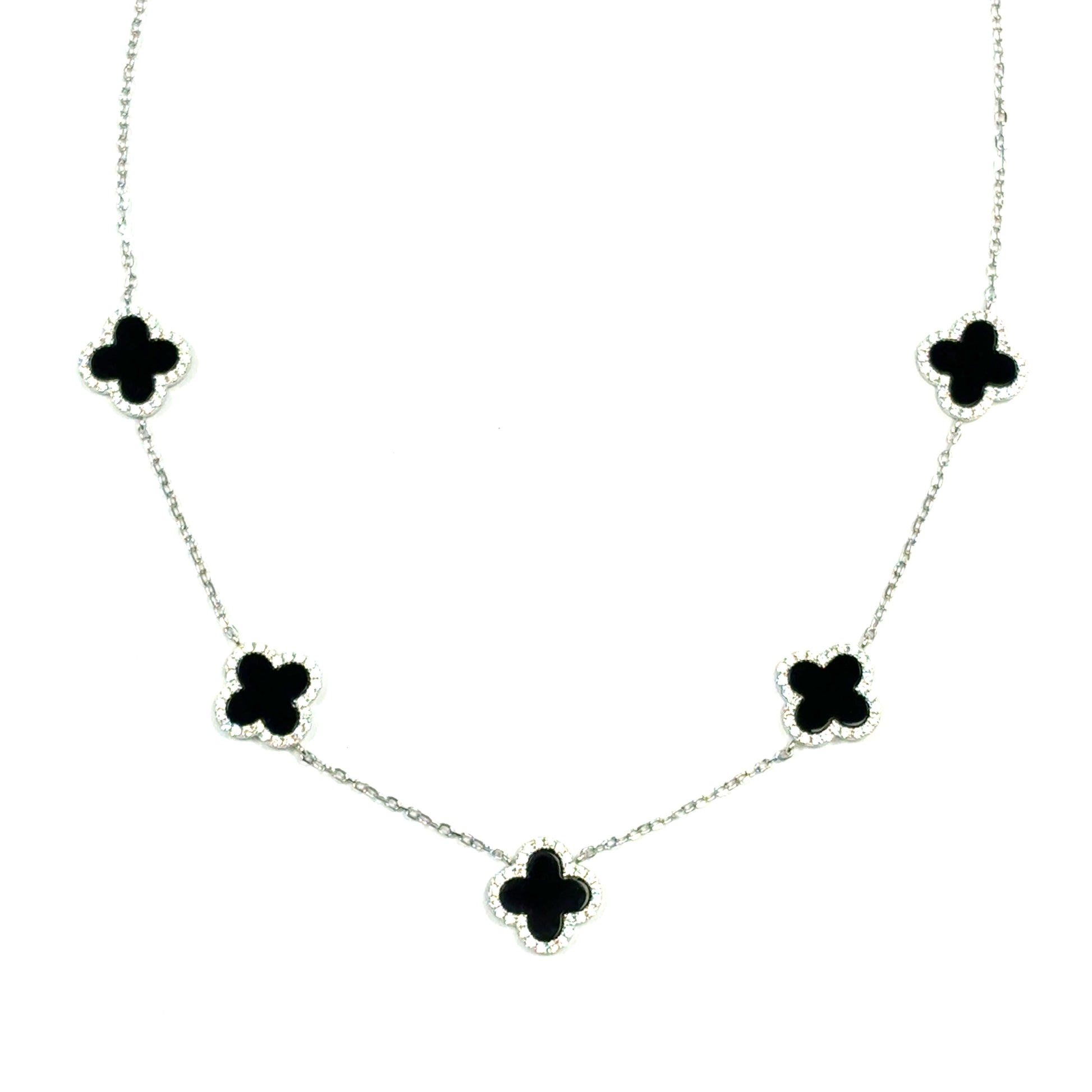 Sterling Silver CZ & Black Enamel Clover Scatter Necklet