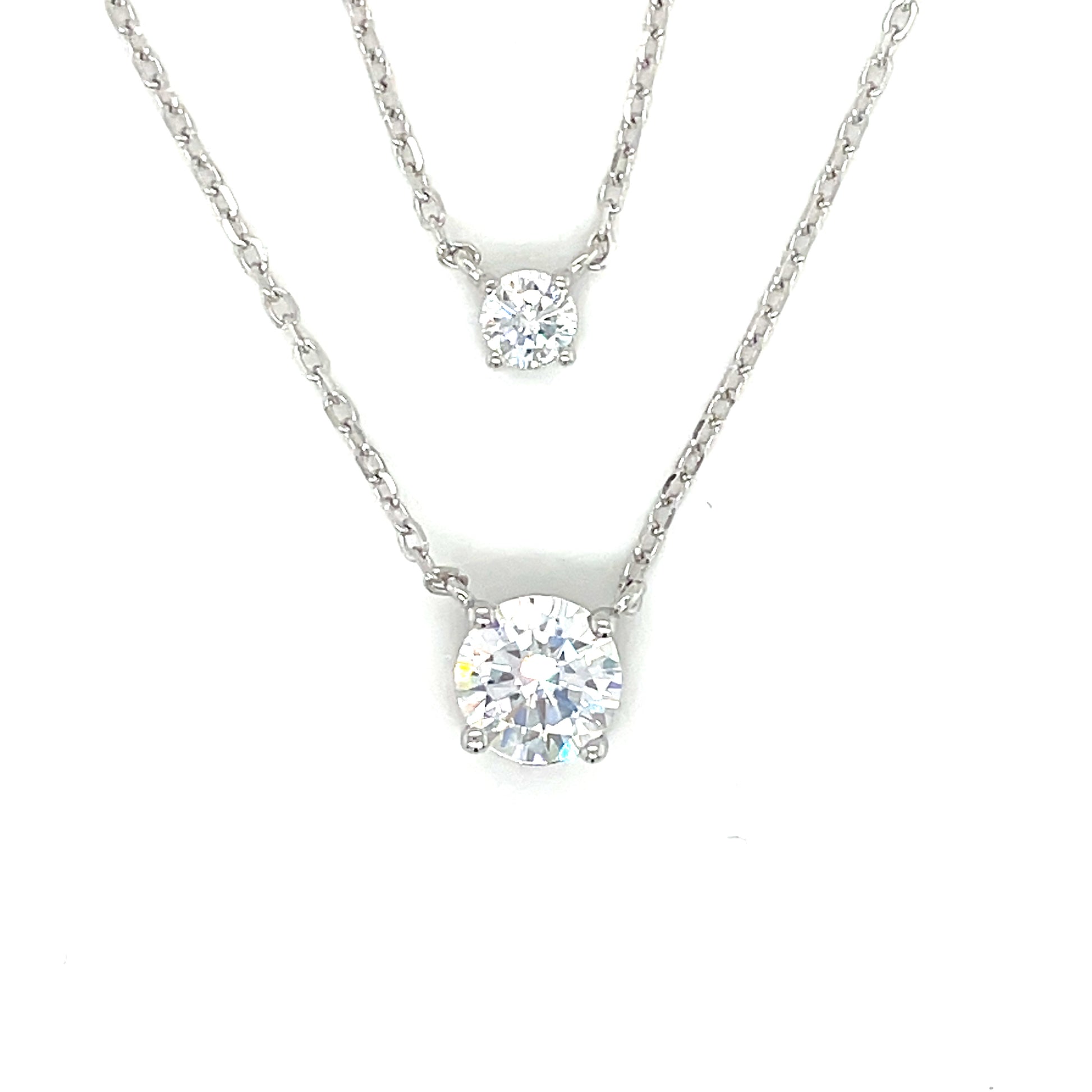 Sterling Silver Double Layered 3mm & 7mm Cubic Zirconia Necklet