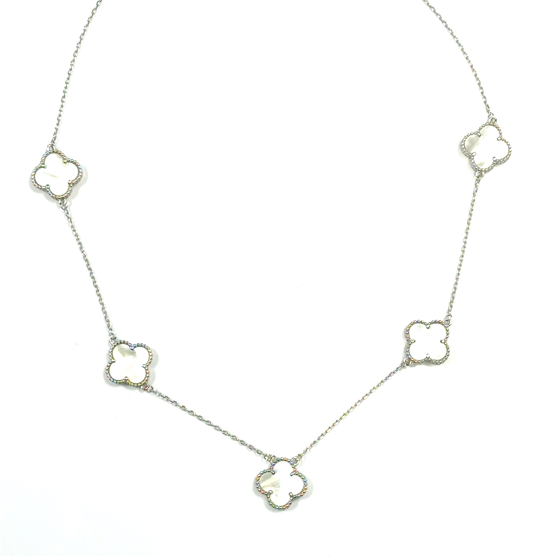 Sterling Silver Mother Of Pearl Clover Scatter Necklet