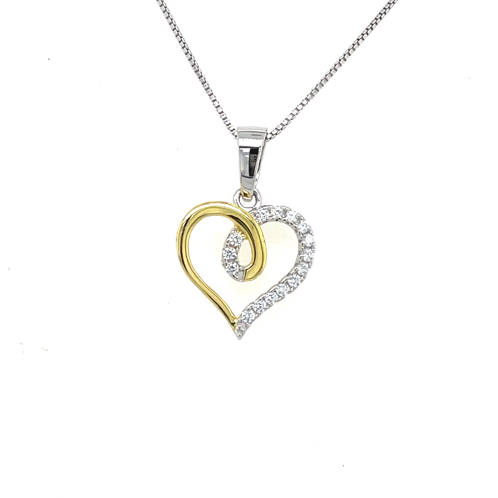 Sterling Silver and Gold Plated Half CZ Open Heart Pendant
