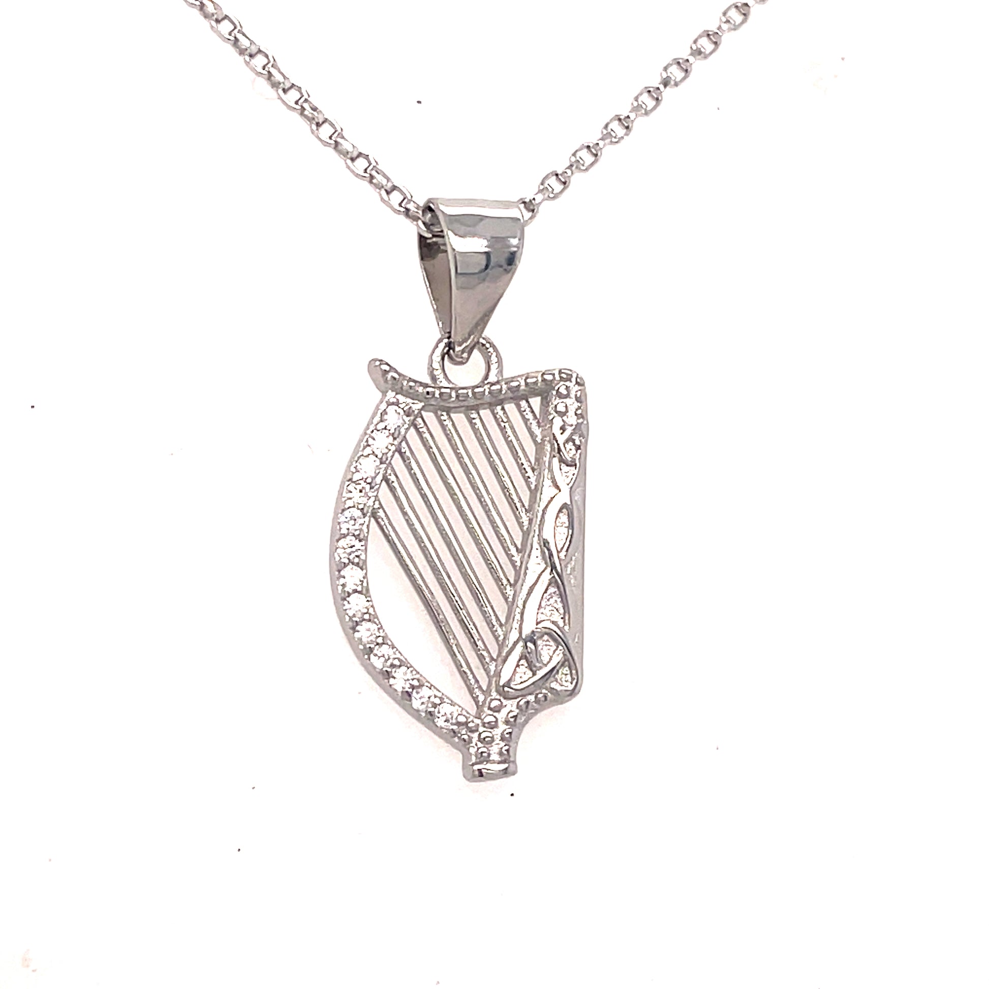 Sterling Silver CZ Harp Pendant
