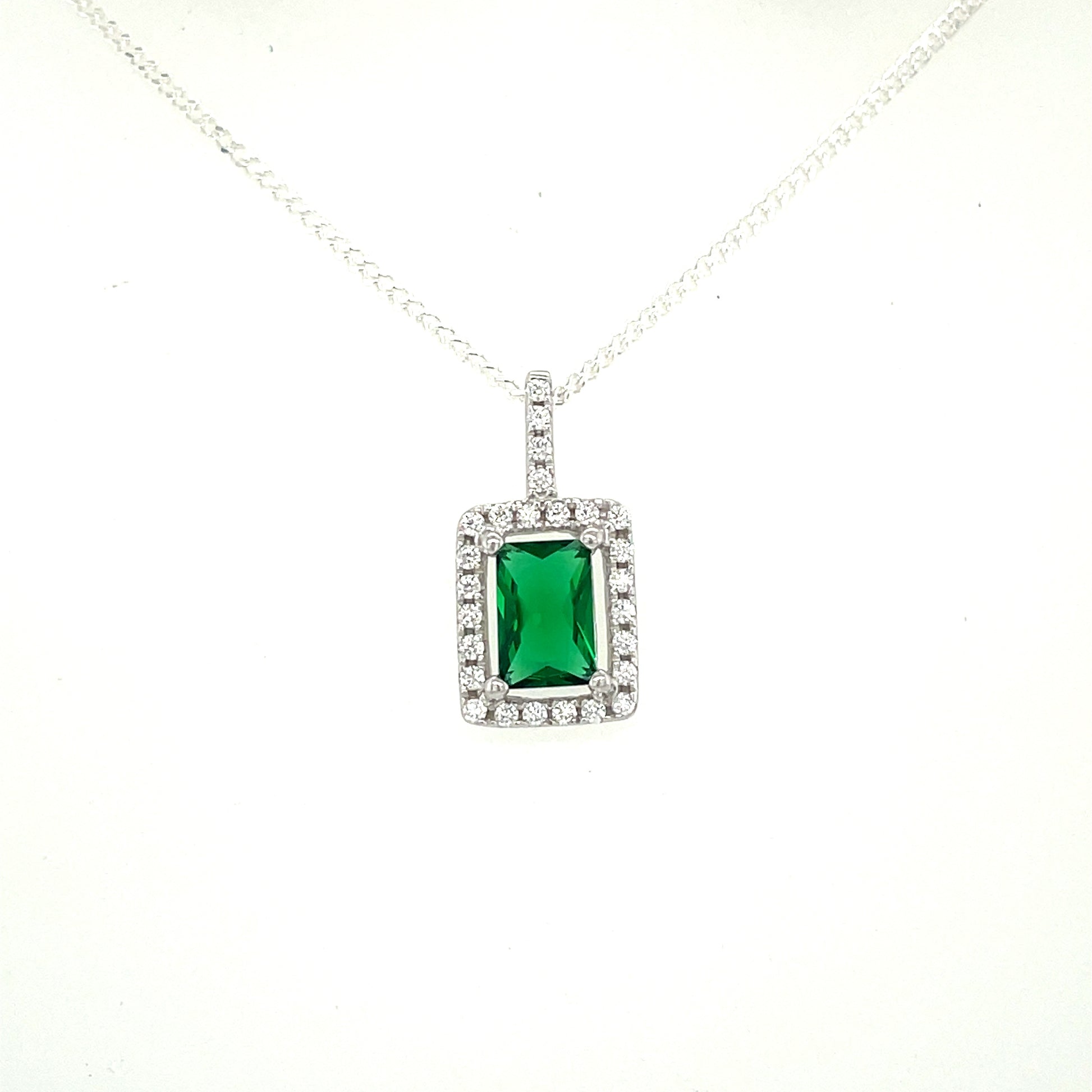 Sterling Silver Cubic Zirconia/Green Square Cluster Pendant