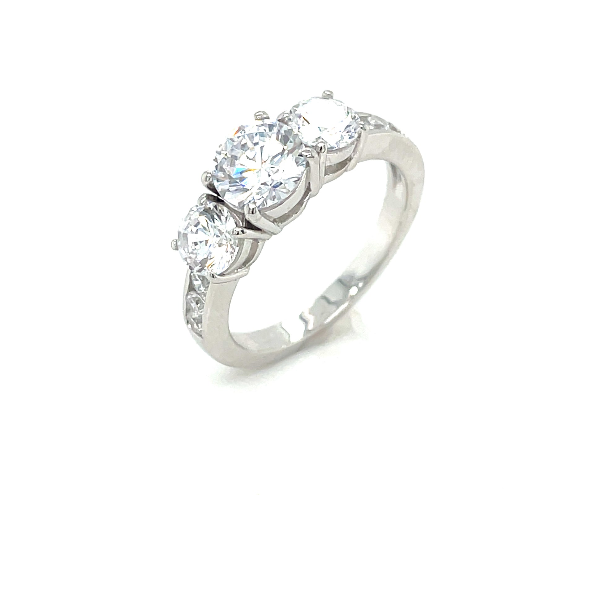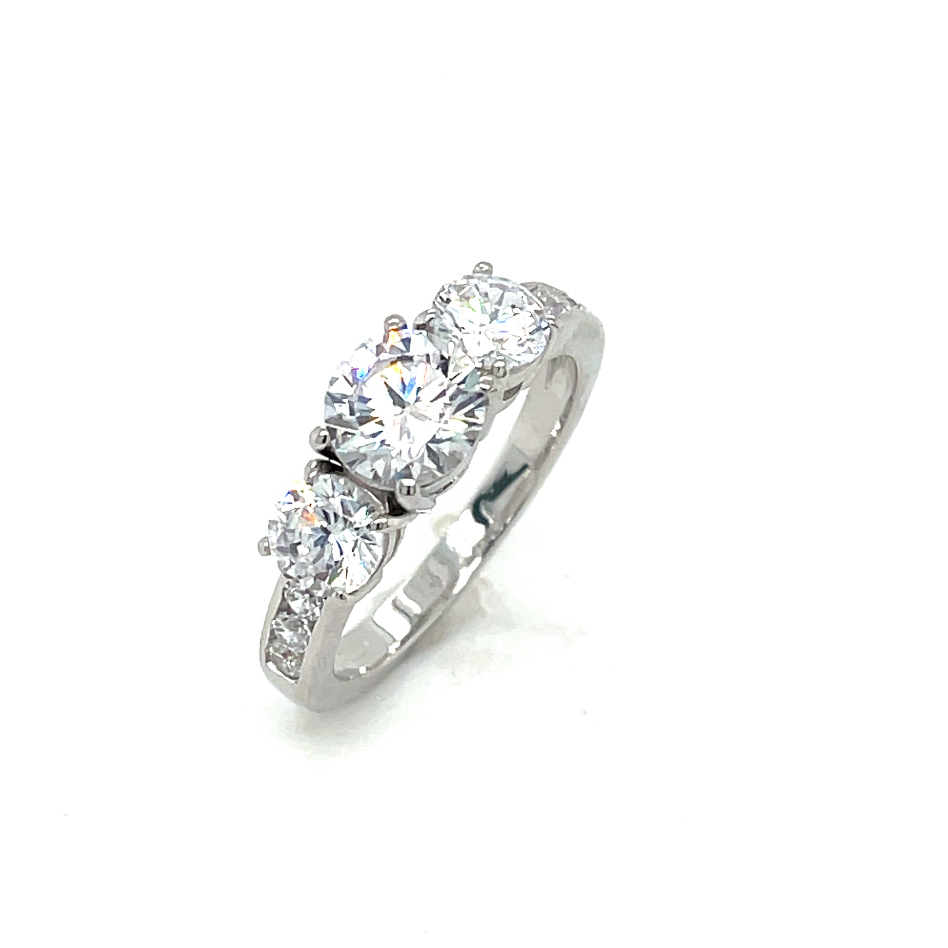 Sterling Silver Three Stone Ring With Cubic Zirconia Shoulders