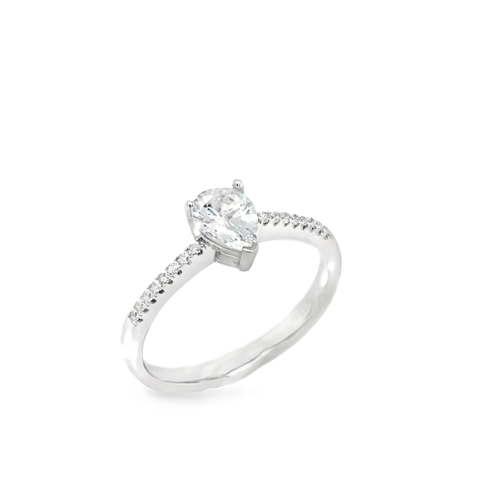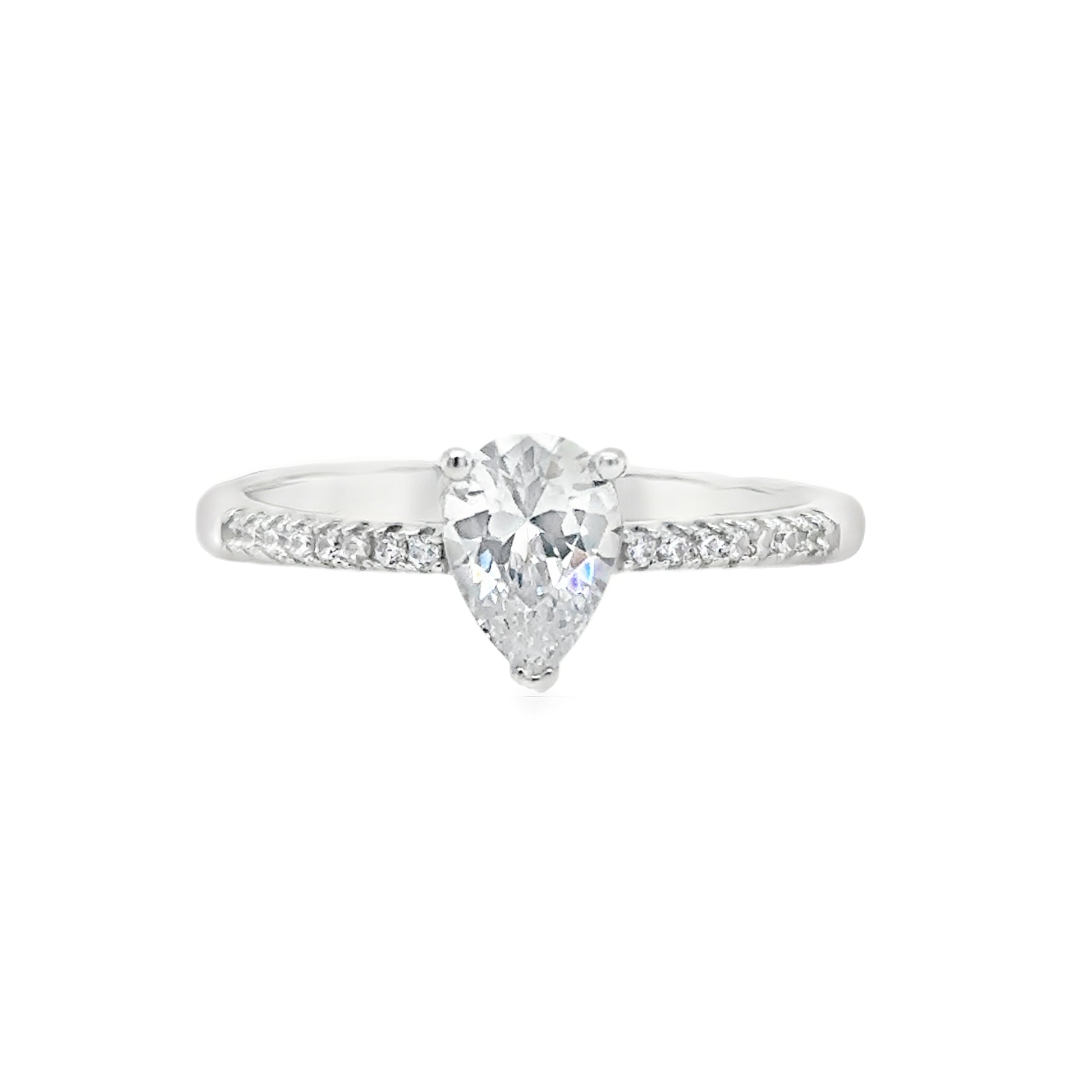 Sterling Silver Cubic Zirconia Pear Solitaire Ring