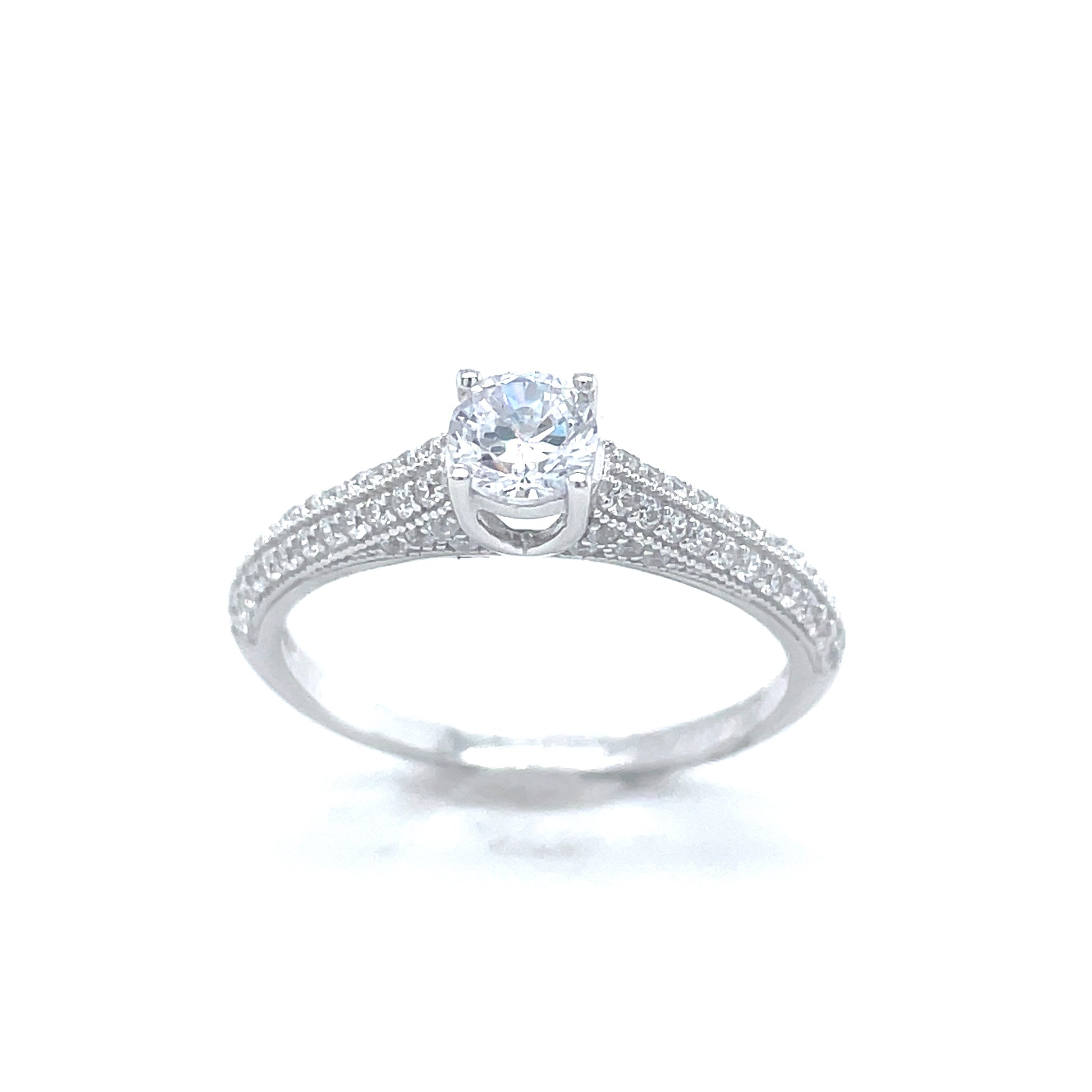 Sterling Silver Cubic Zirconia Solitaire Ring With Pave Set