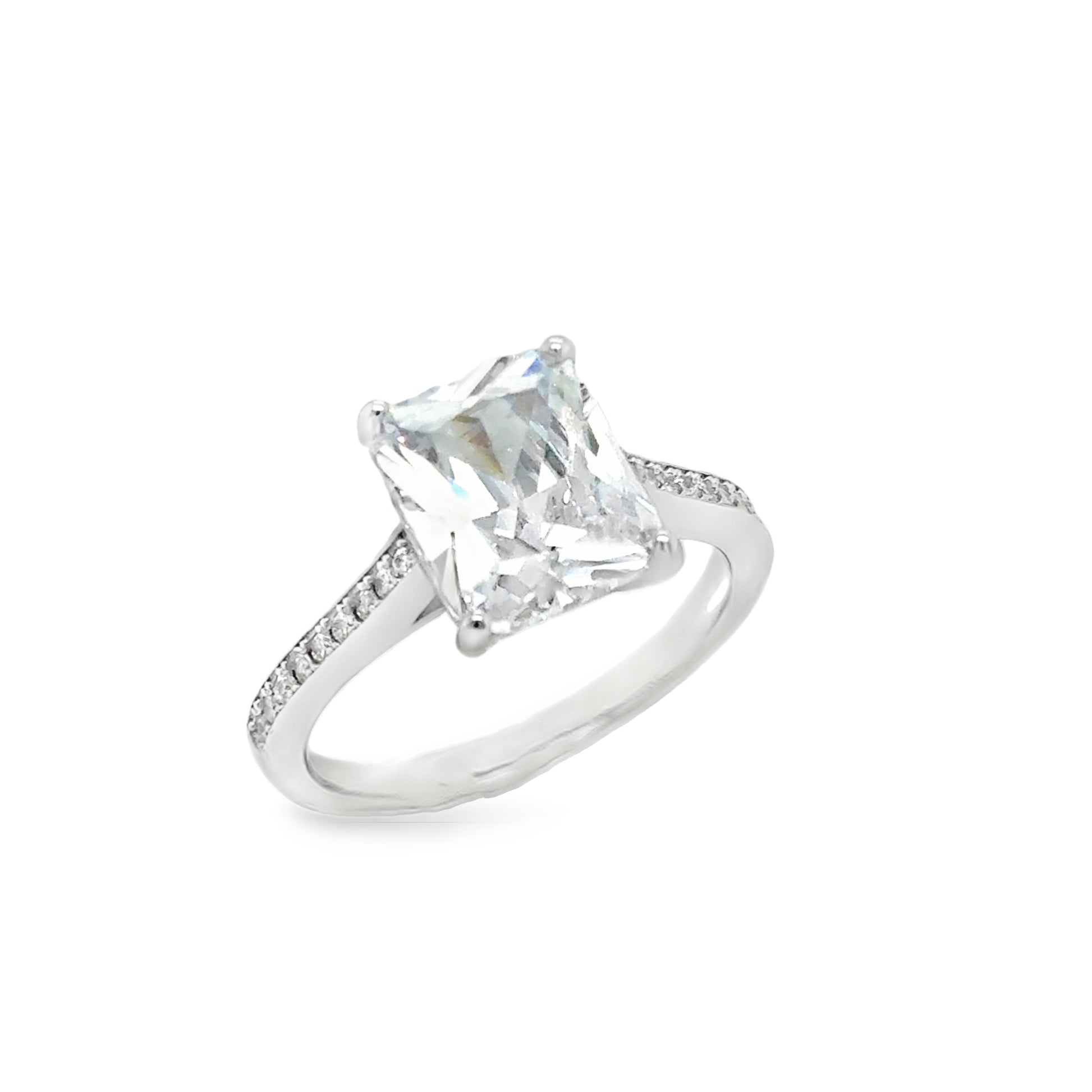 Sterling Silver Rectangular CZ Ring With CZ Shoulders
