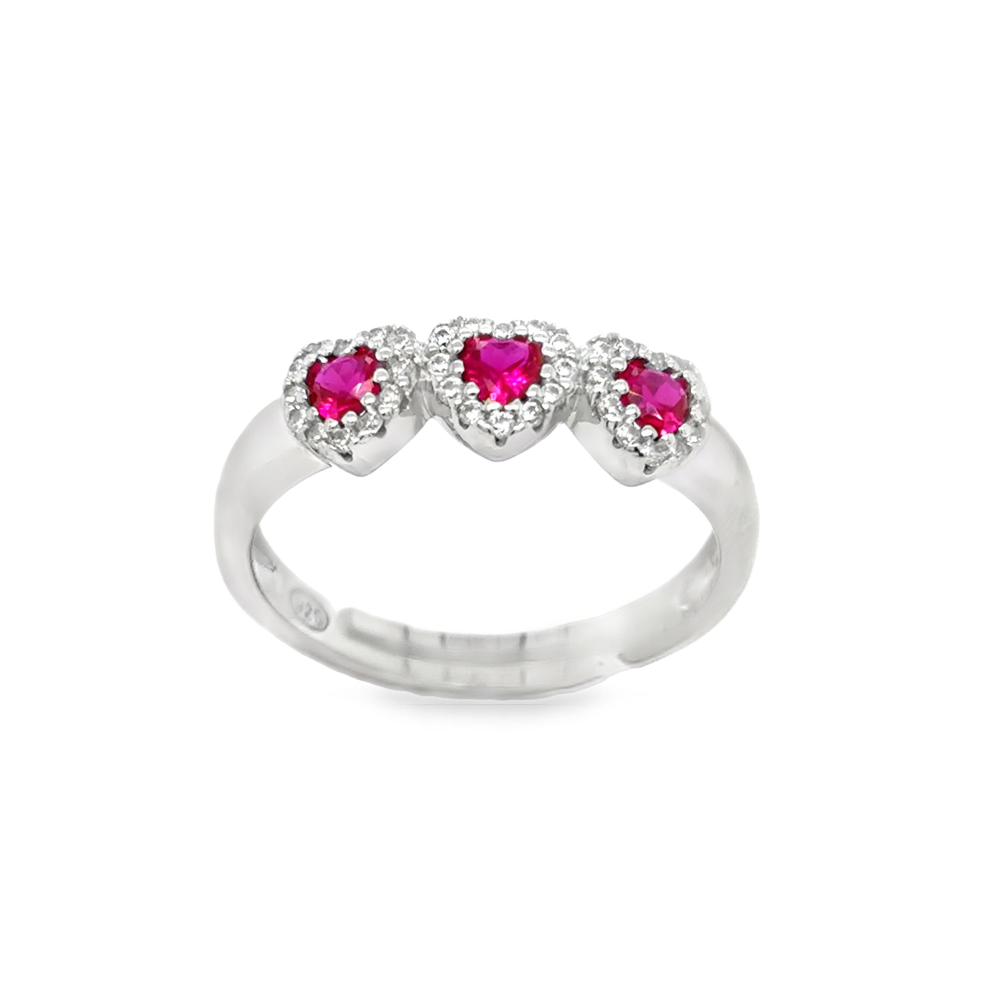 Sterling Silver CZ & Red Heart Halo Expandable Ring