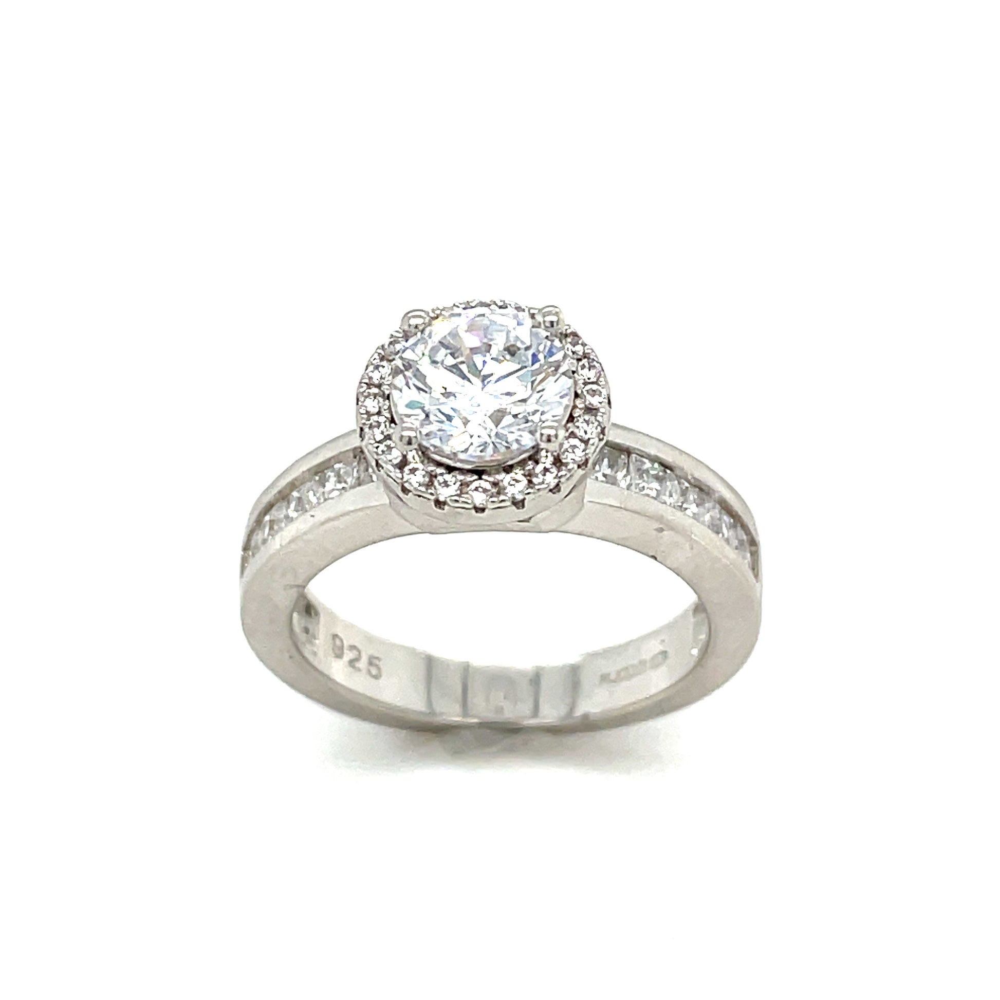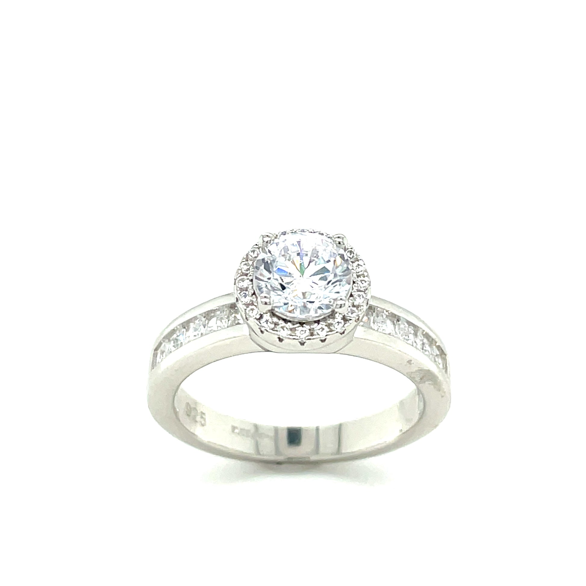 Sterling Silver Cubic Zirconia Solitaire Channel Set Ring