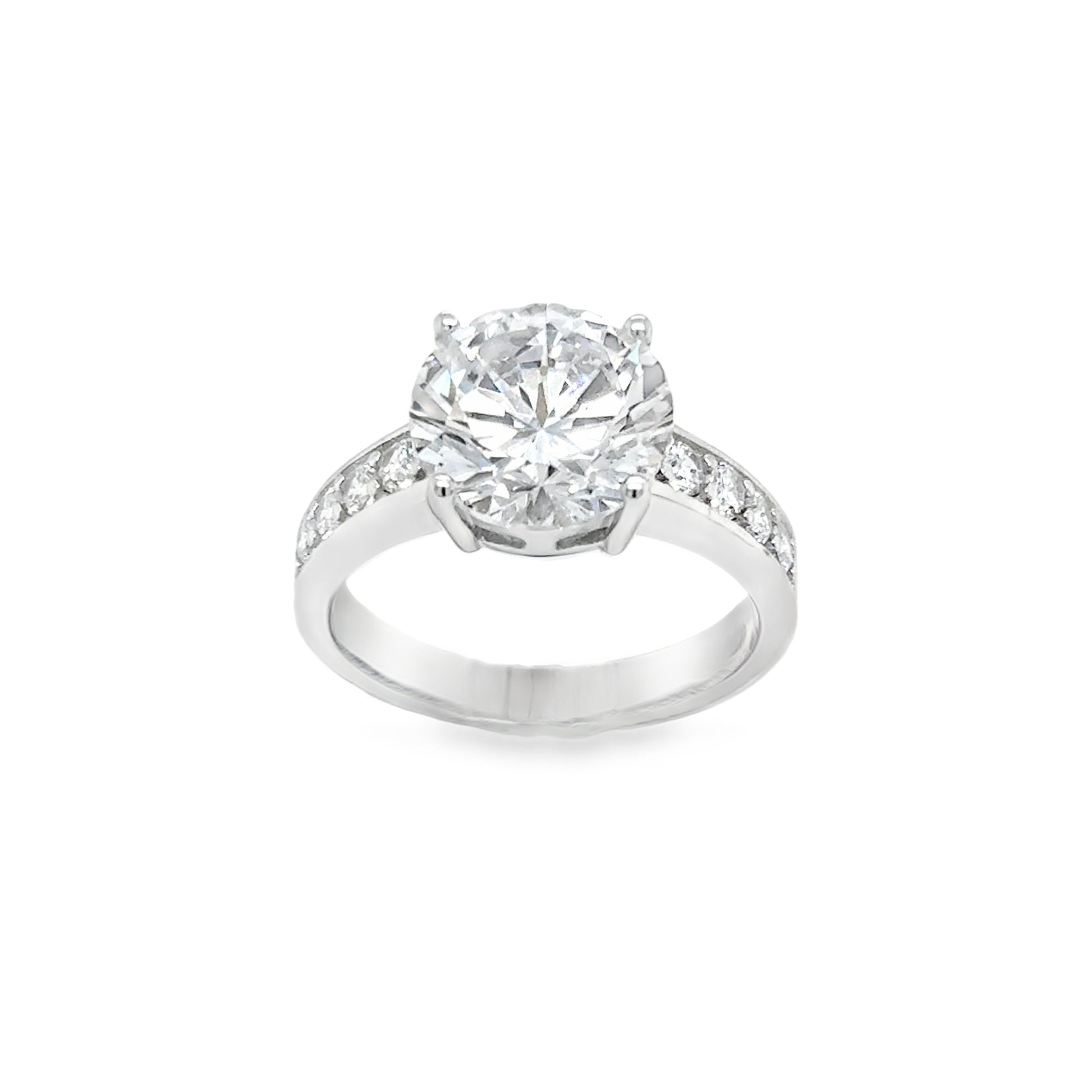 Sterling Silver CZ Round Solitaire Ring With Channel Set Shoulders