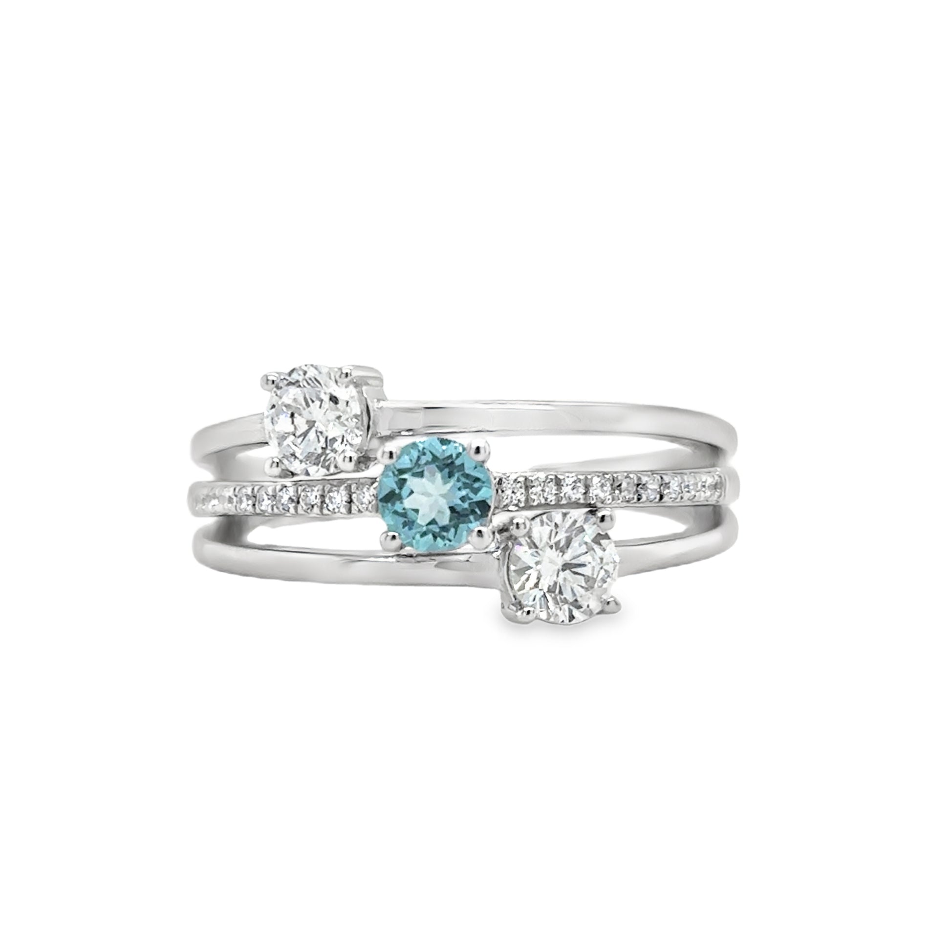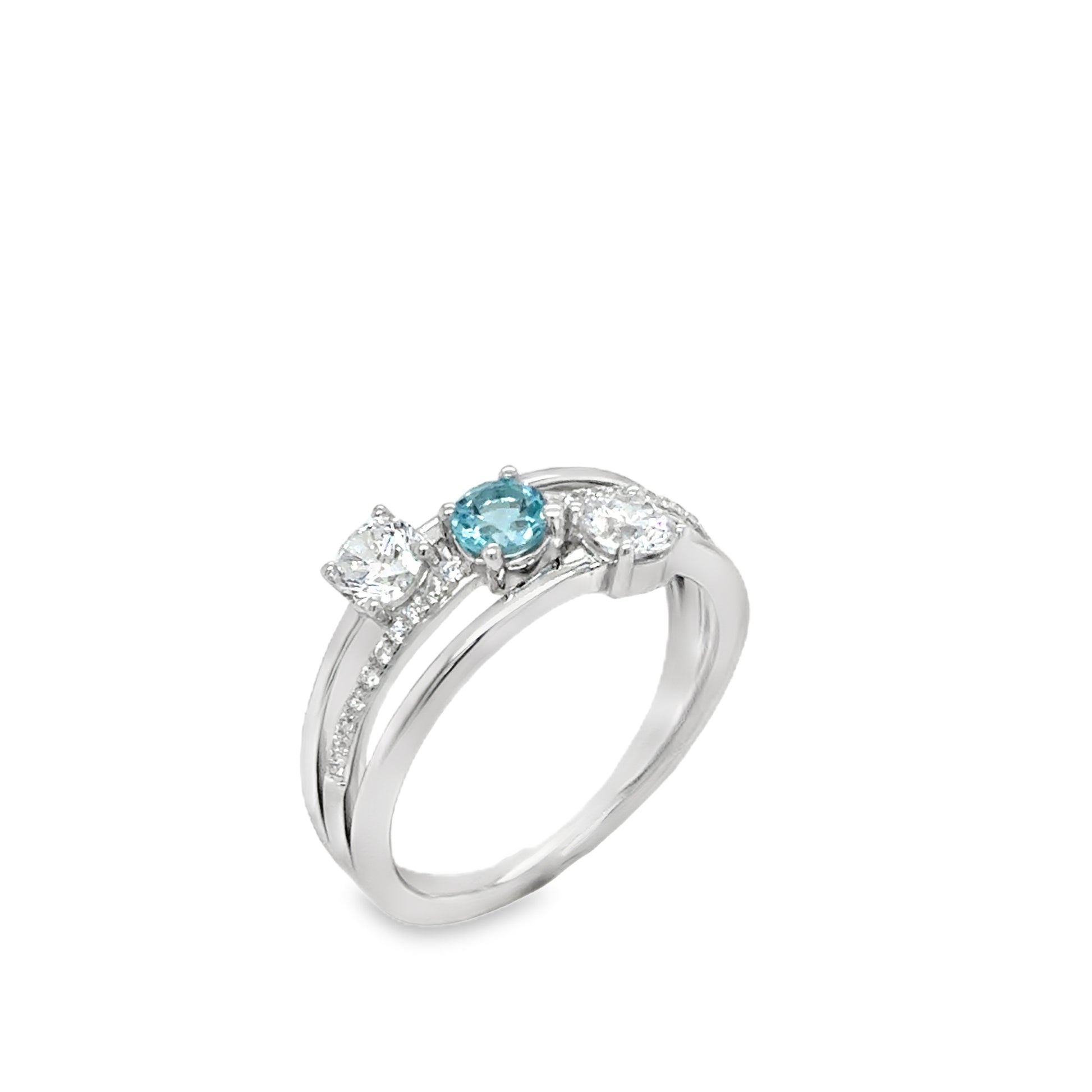 Sterling silver Open Three Row Blue Topaz and CZ Ring