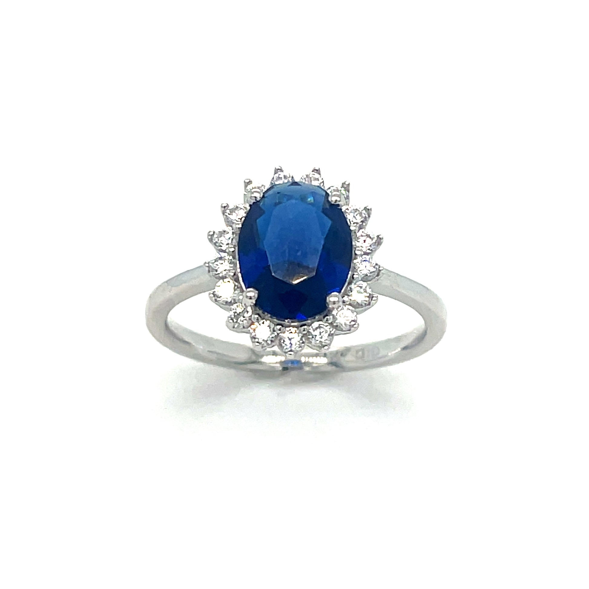 Sterling Silver Cubic Zirconia/Blue Oval Cluster Ring
