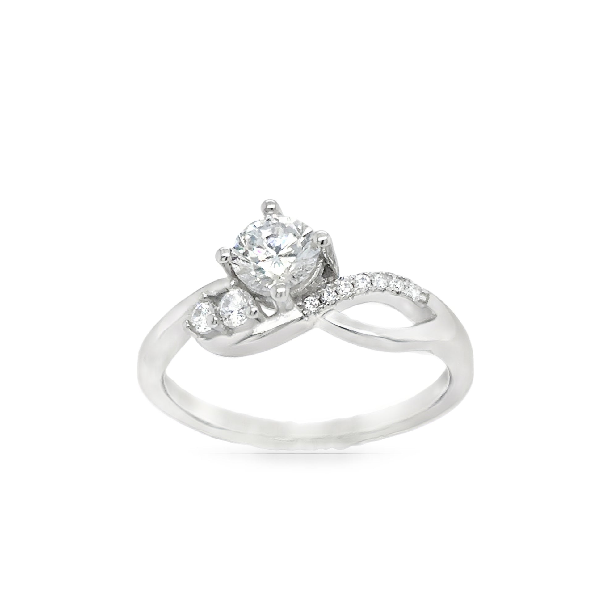 Sterling Silver CZ Soliatire Twist Ring With CZ Shoulders