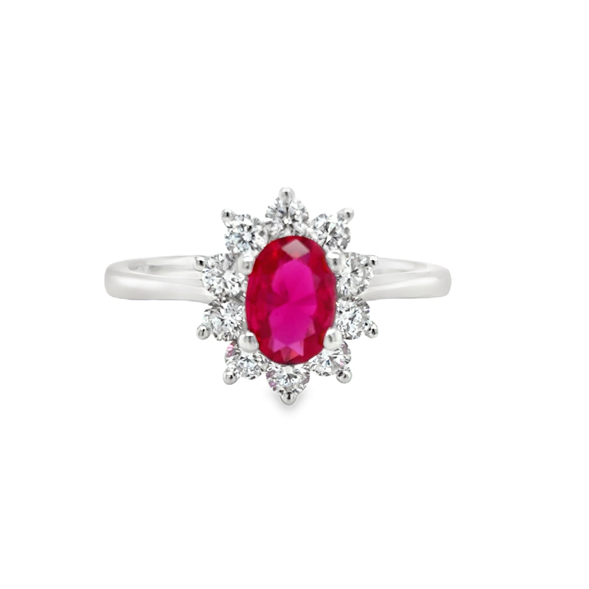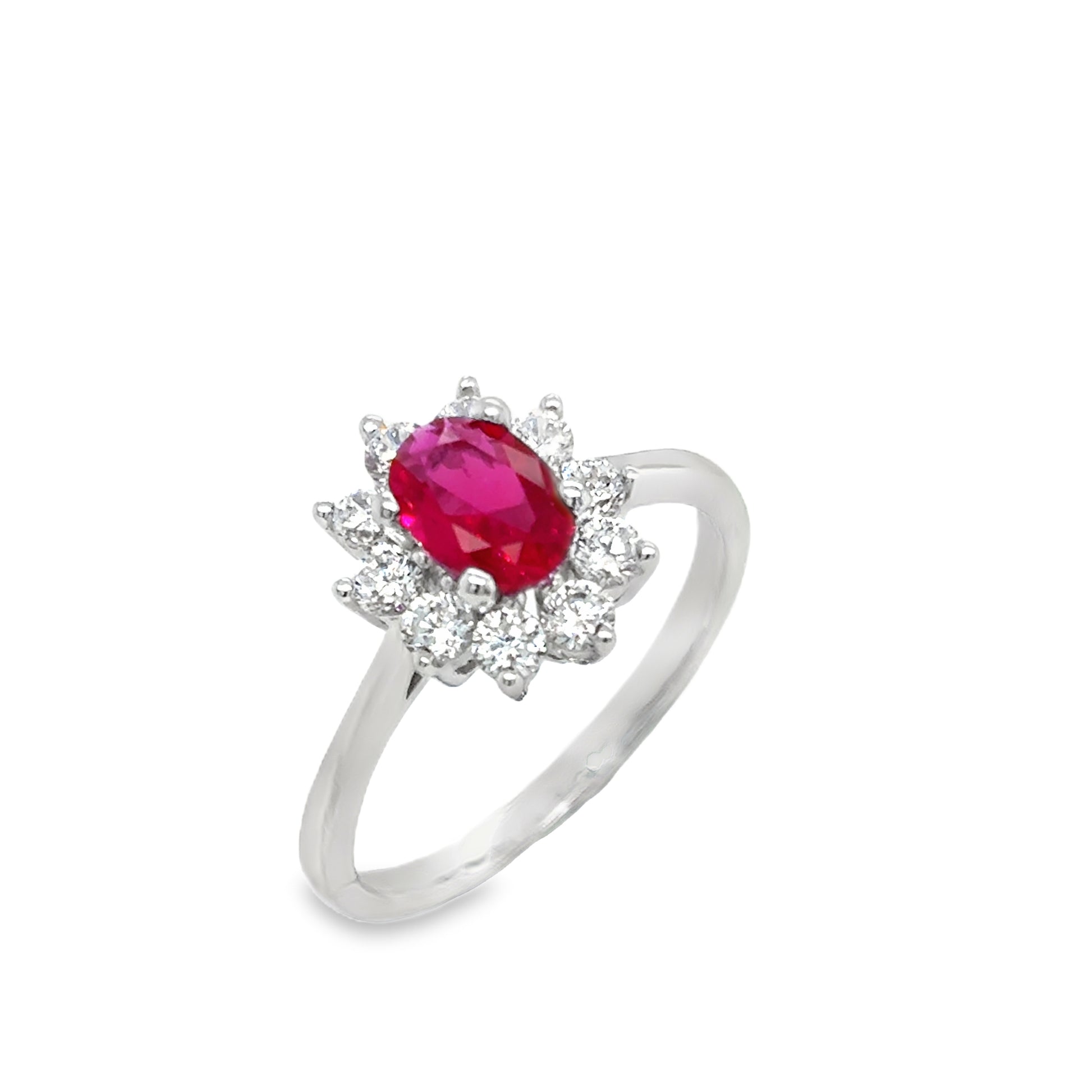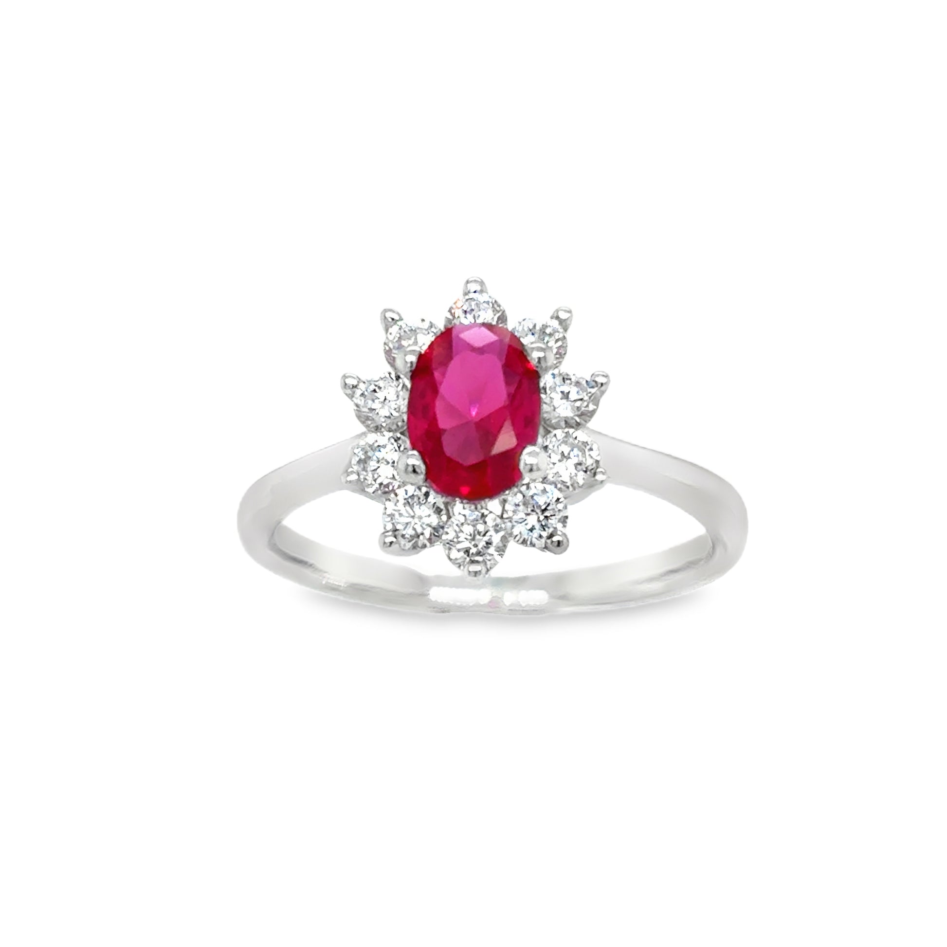 Sterling Silver Cubic Zirconia/Red Flower Cluster Ring