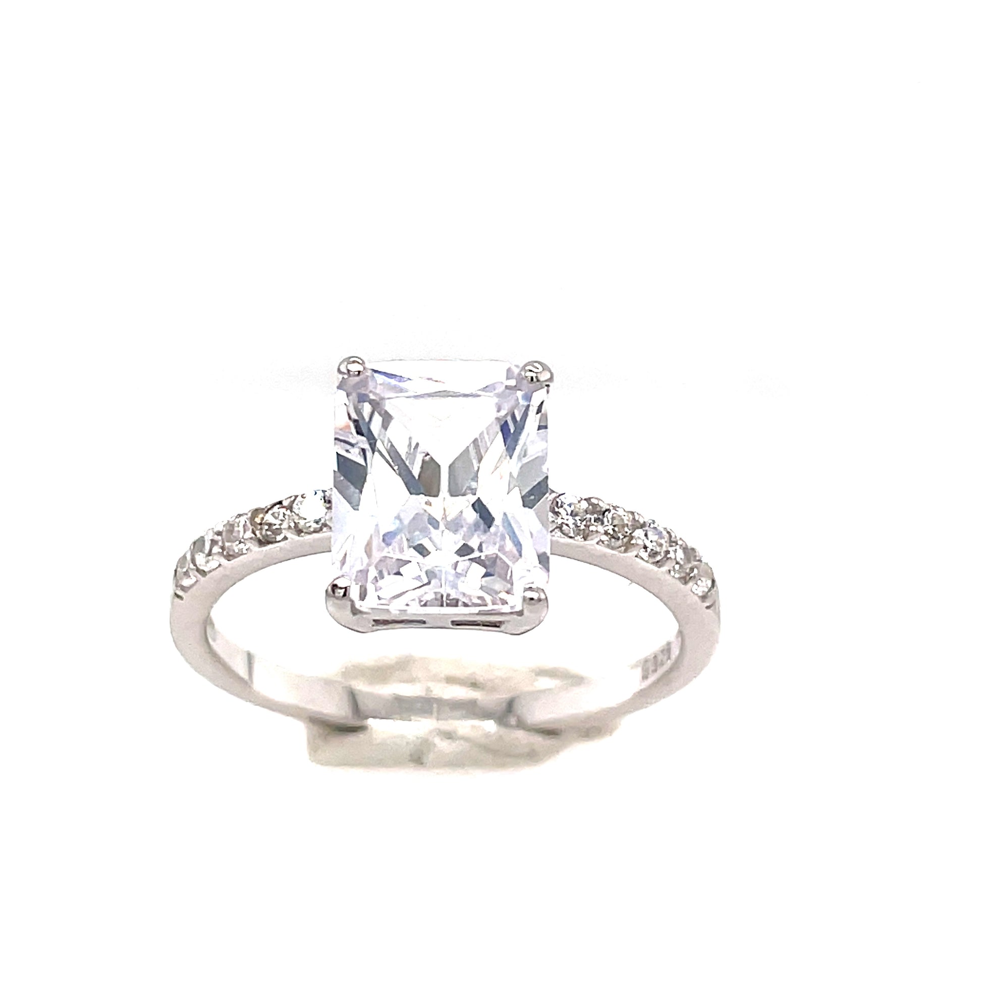 Sterling Silver Square Solitaire Cubic Zirconia Ring