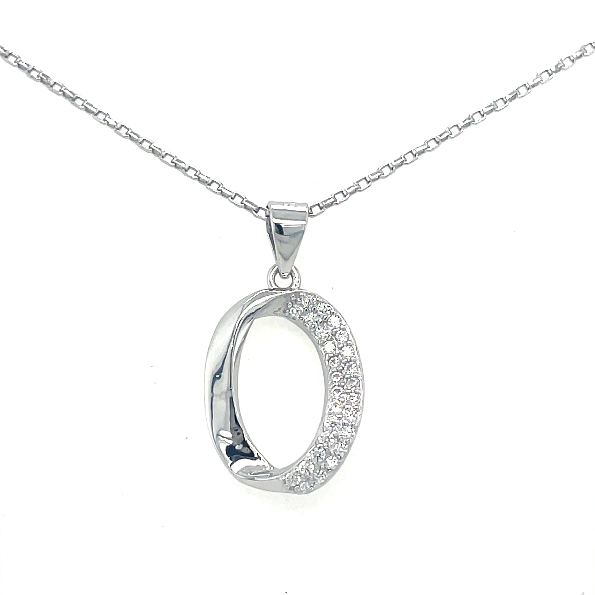 Sterling Silver Polished and CZ Open Twist Circle Earring and Pendant Set