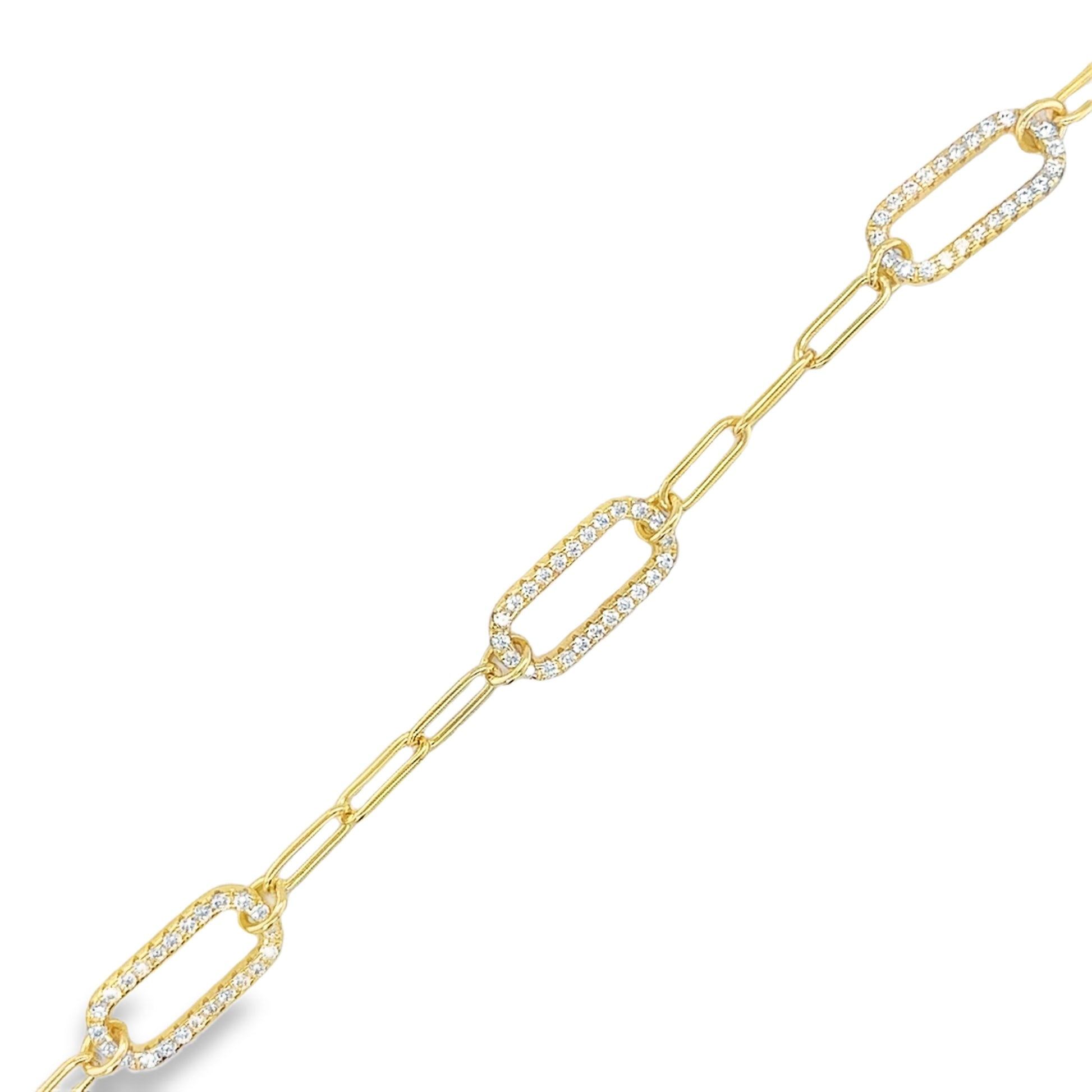 Sterling Silver 14ct Gold Plated Paperlink Bracelet with CZ Detail
