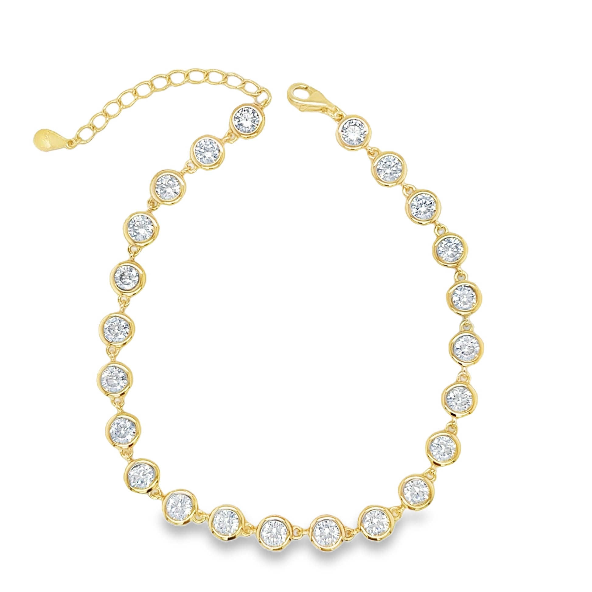 Sterling Silver 14ct Gold Plated Rubover CZ Bracelet