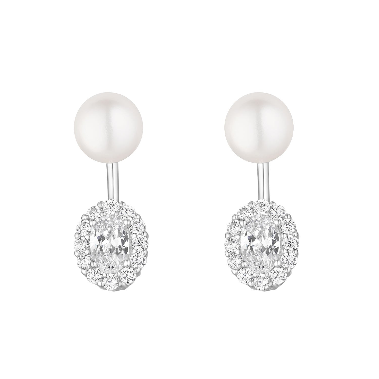Sterling Silver 7mm Freshwater With CZ Oval Clust Earring