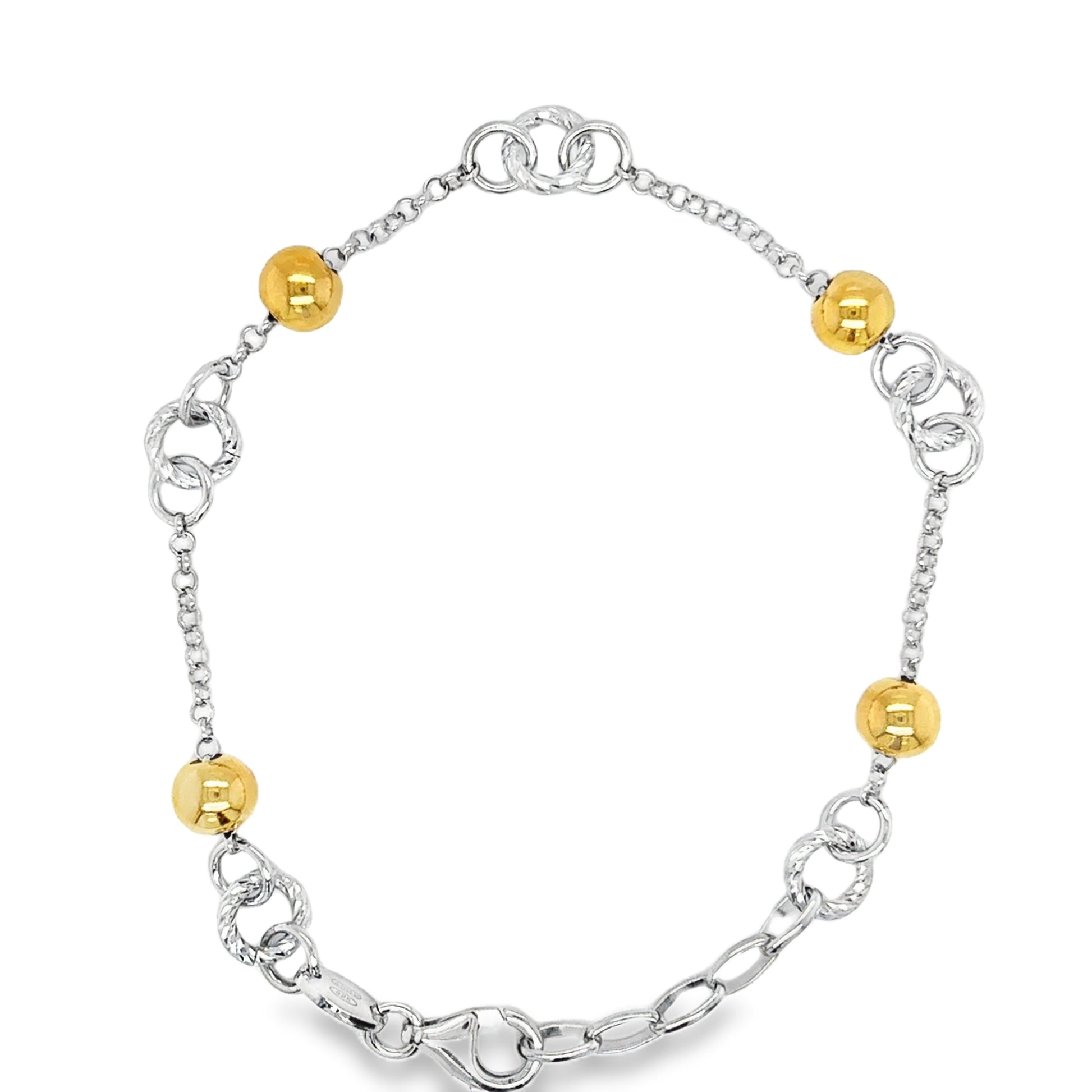 Sterling Silver and Gold Plated Diamond Cut Circle and Ball Bracelet