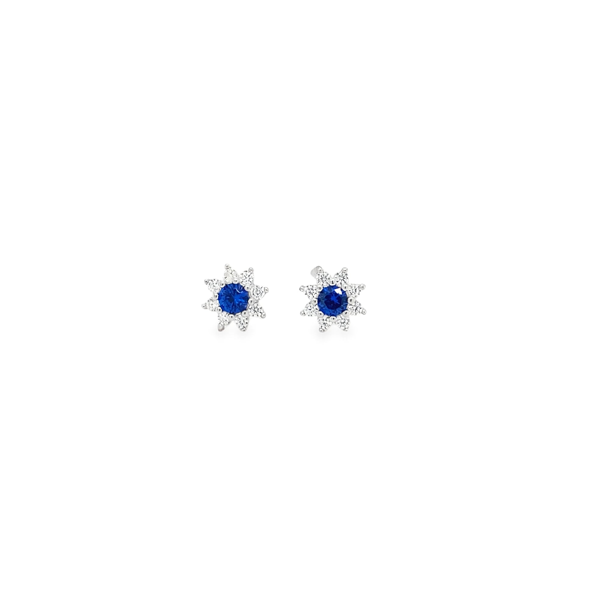Sterling Silver Blue & CZ Flower Cluster Earrings