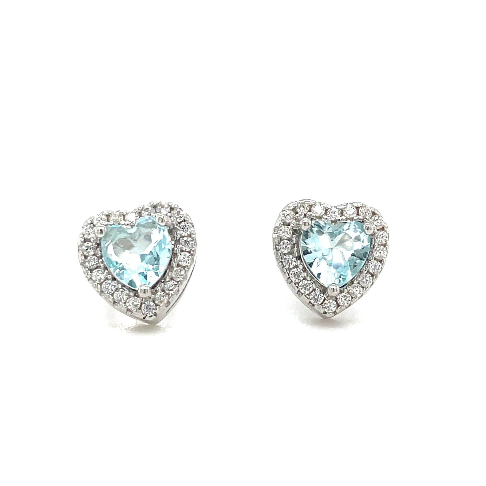 Sterling Silver Blue CZ Heart Halo Stud Earrings