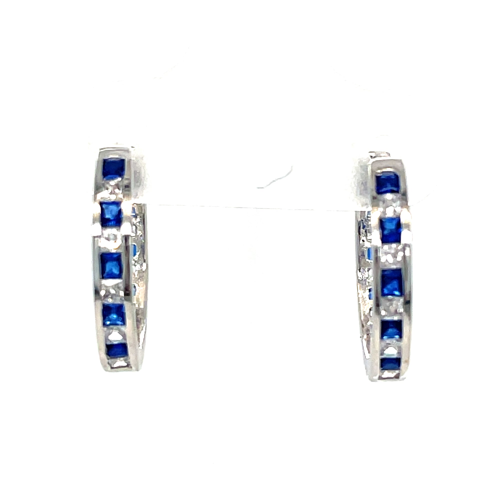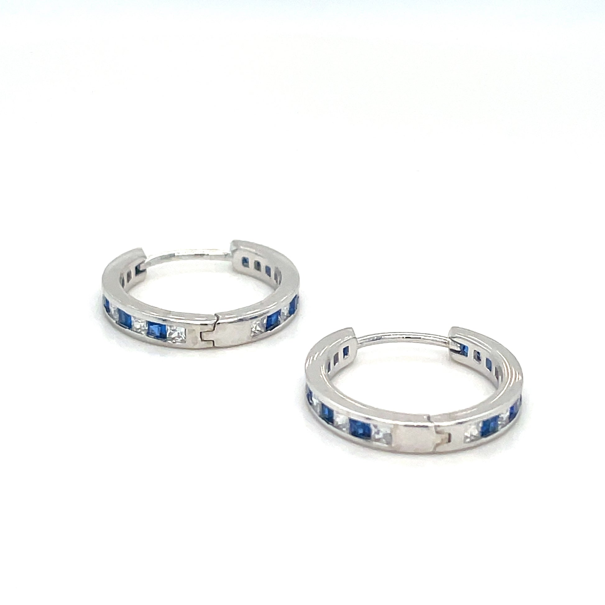 Sterling Silver Channel Set White and Blue CZ Hoop 11mm