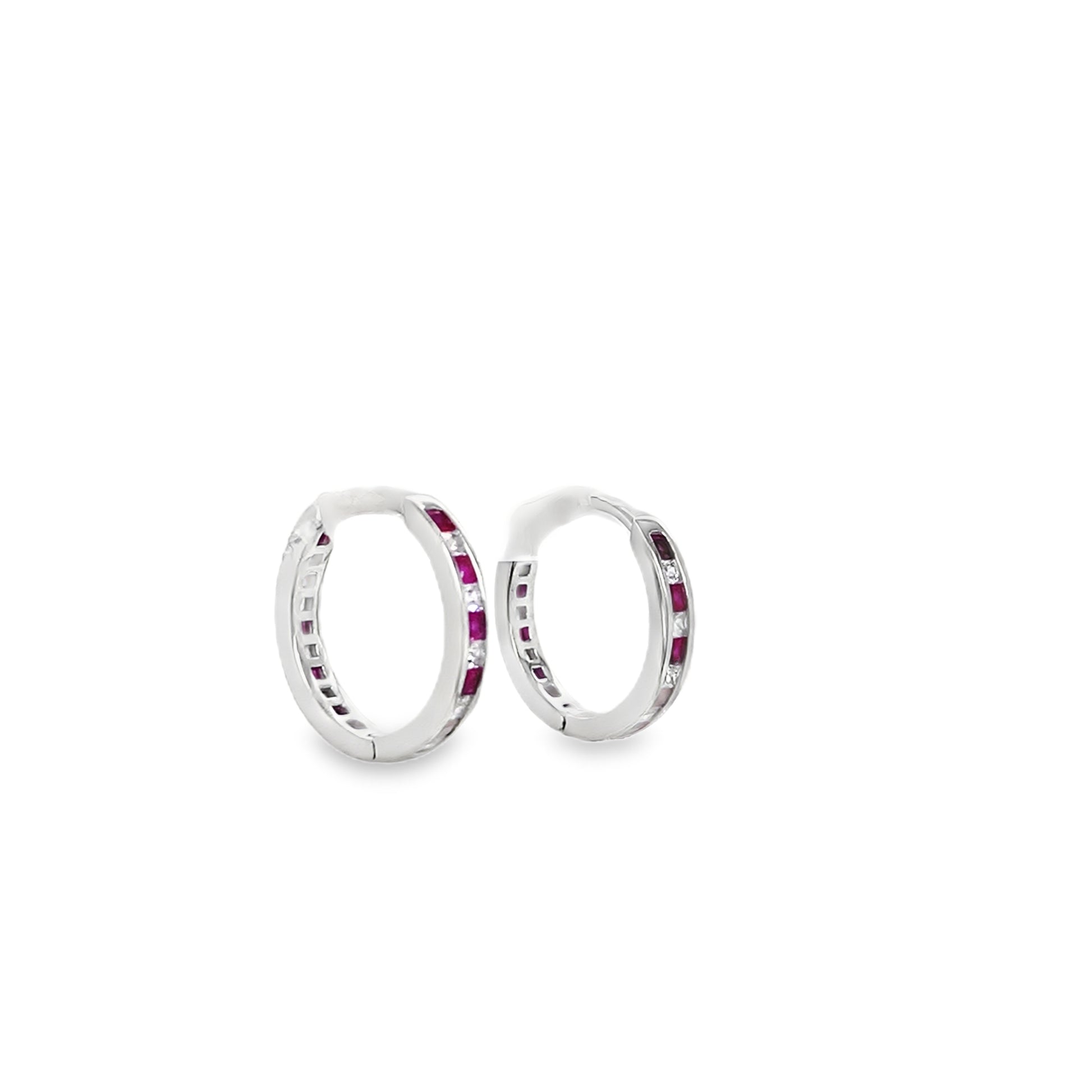 Sterling Silver Channel Set White and Red CZ Hoop 11mm