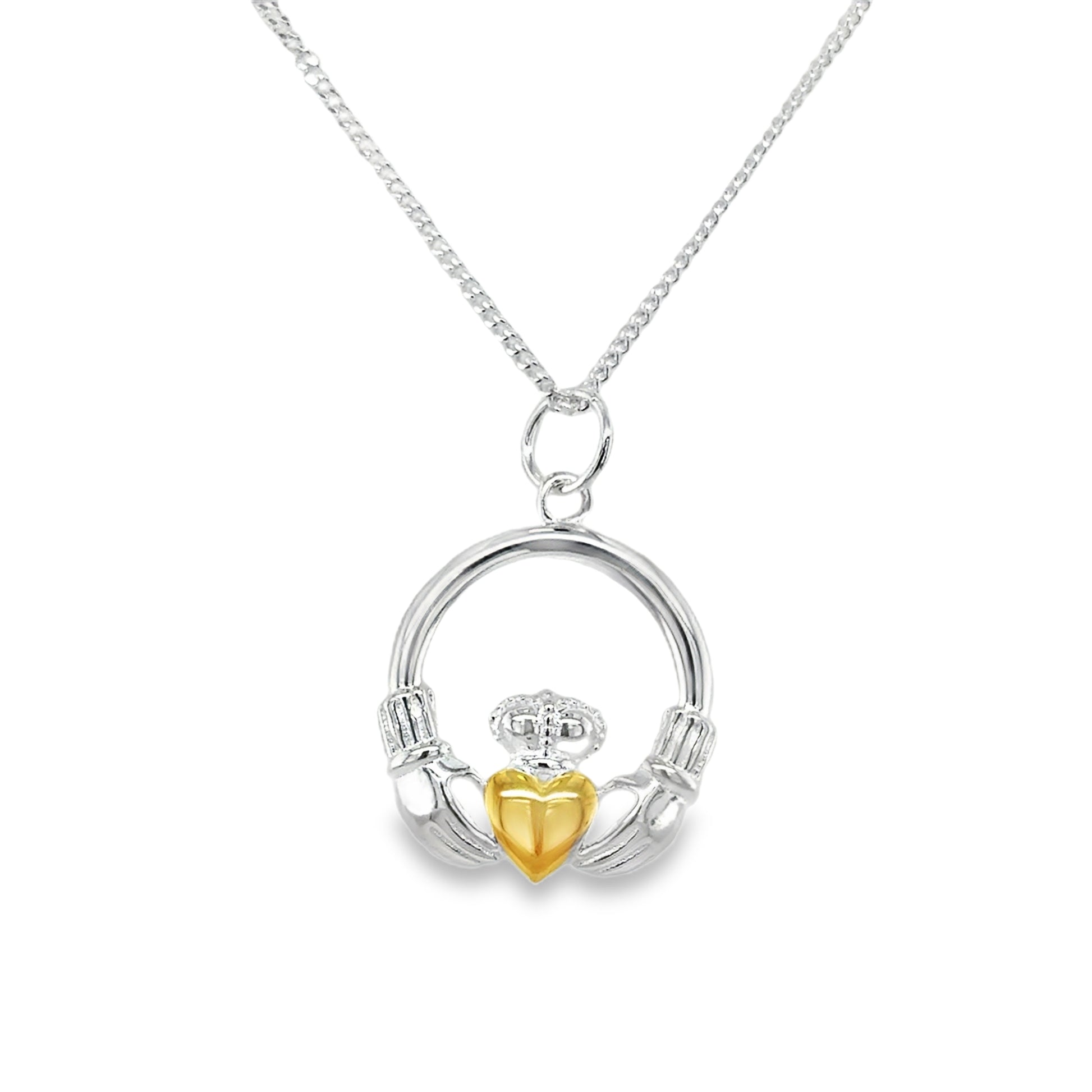 Sterling Silver Claddagh Pendant With Gold Plated Heart