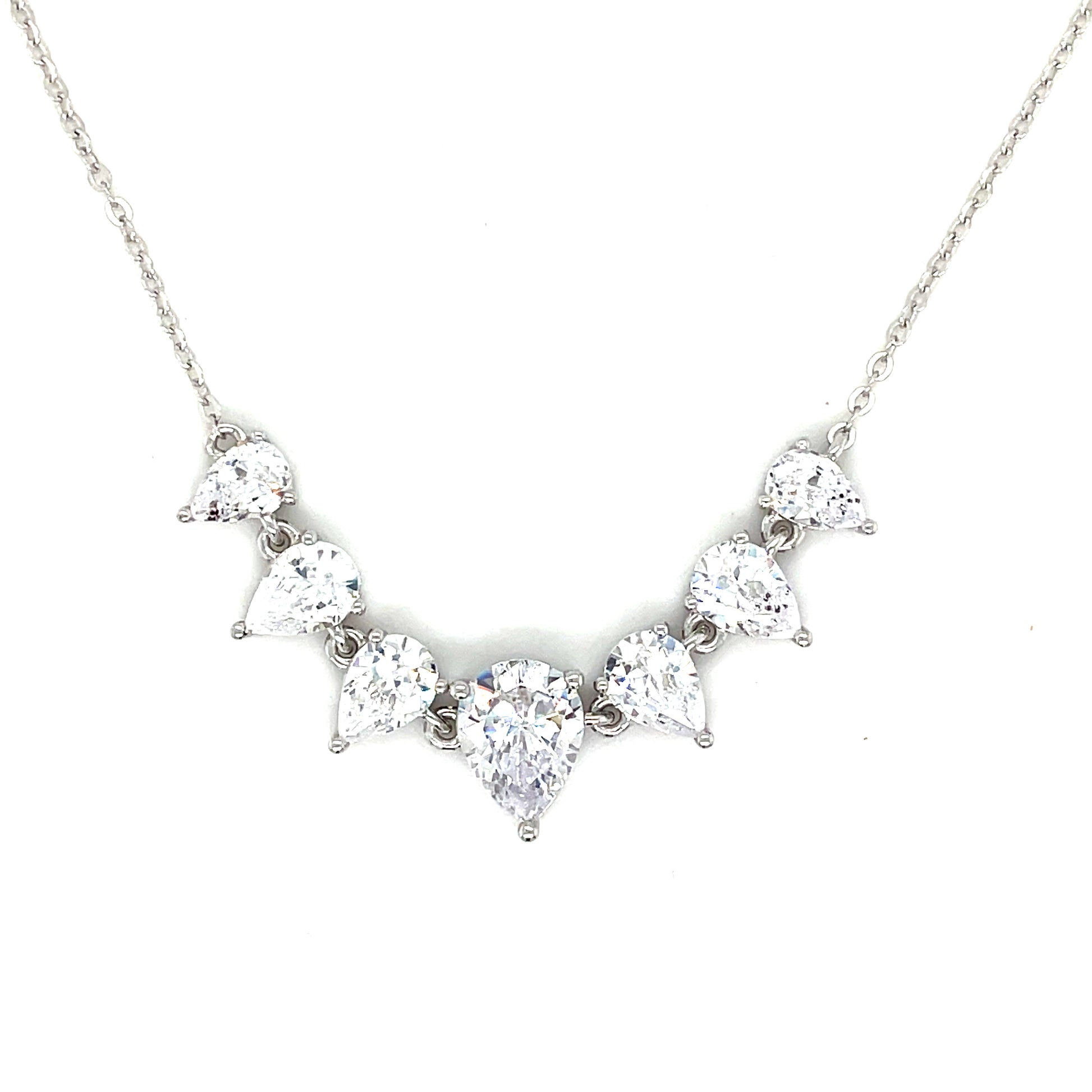 Sterling Silver Cubic Zirconia 7 Pear Graduated Necklet