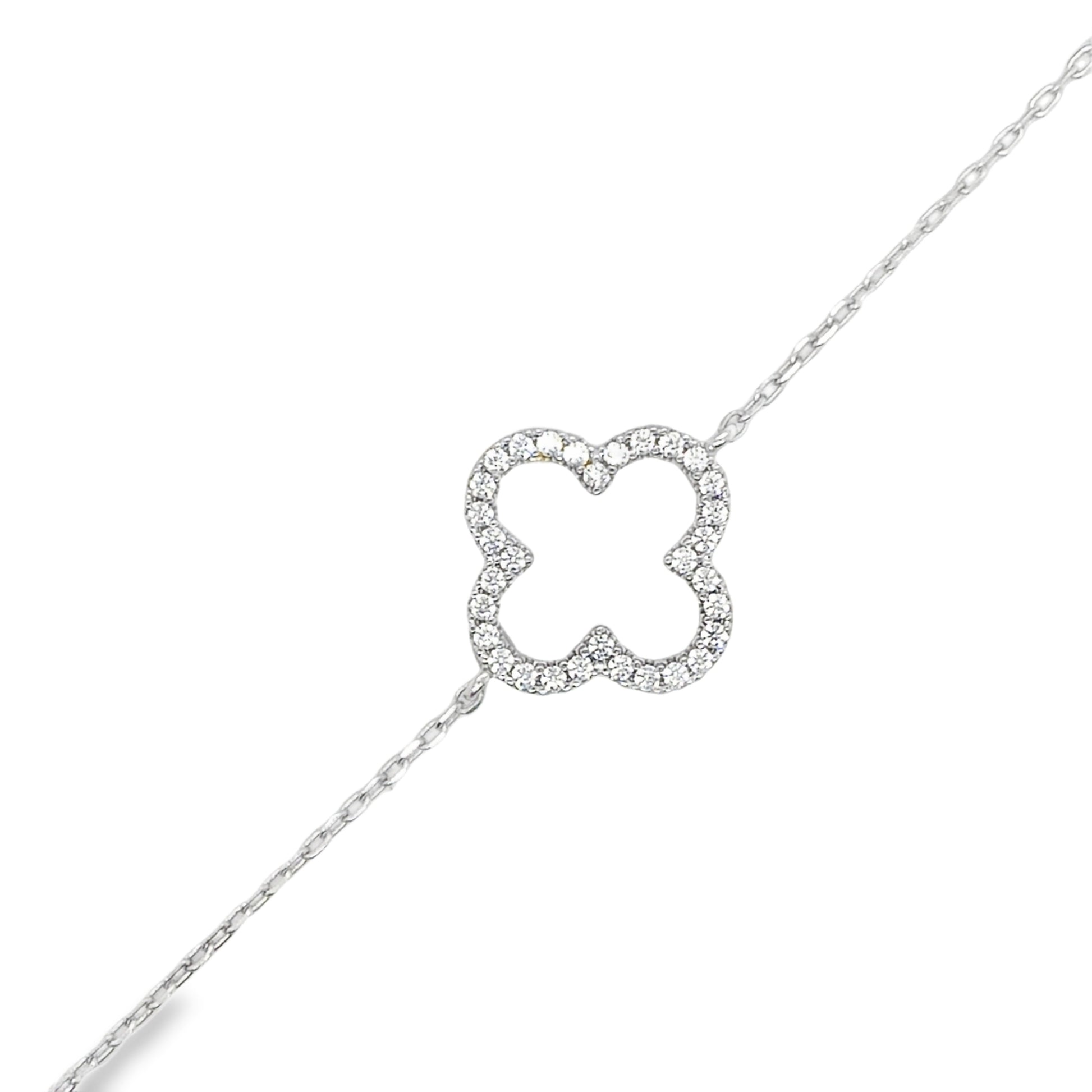 Sterling Silver Cubic Zirconia Clover Bracelet