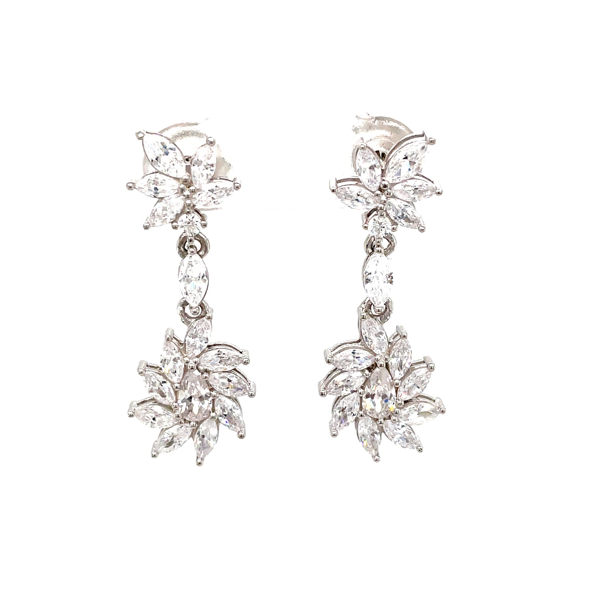 Sterling Silver Cubic Zirconia Cluster Drop Earring