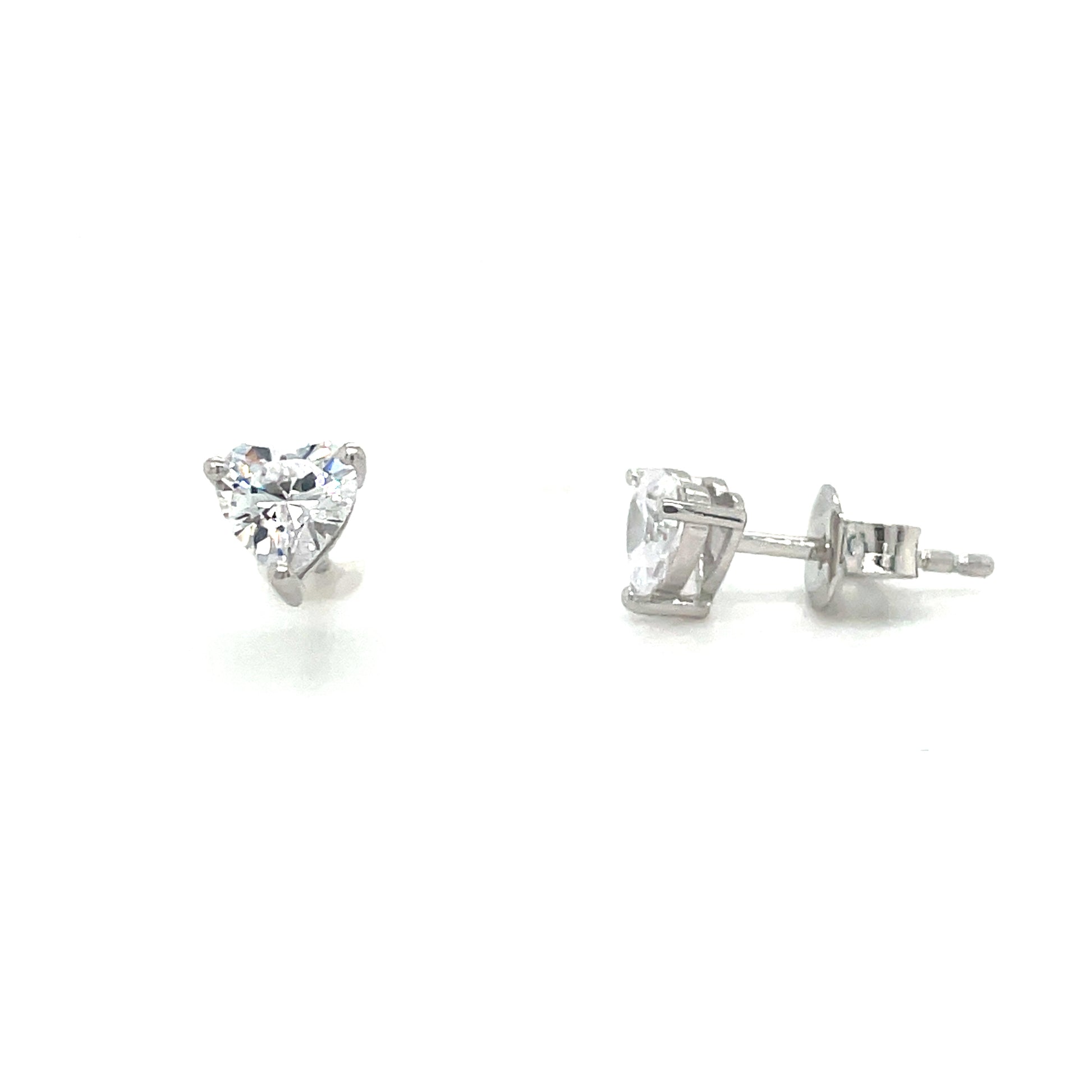 Sterling Silver Cubic Zirconia Heart Stud Earrings
