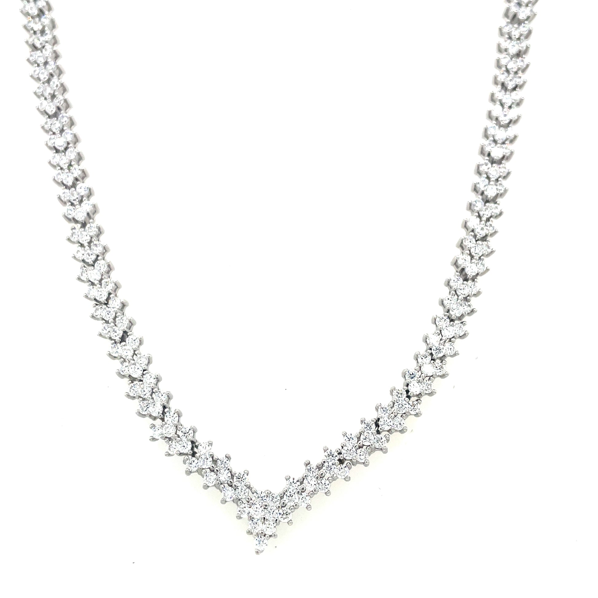 Sterling Silver Cubic Zirconia Multi Stone V Shape Necklet
